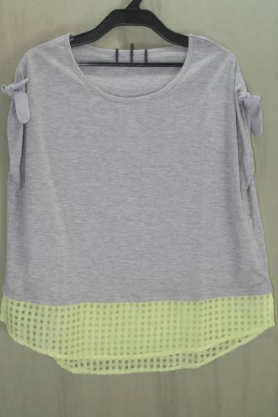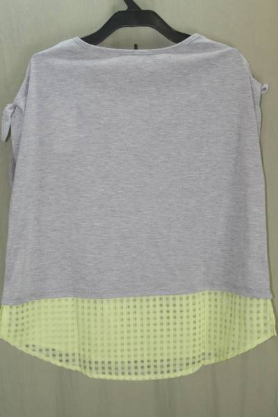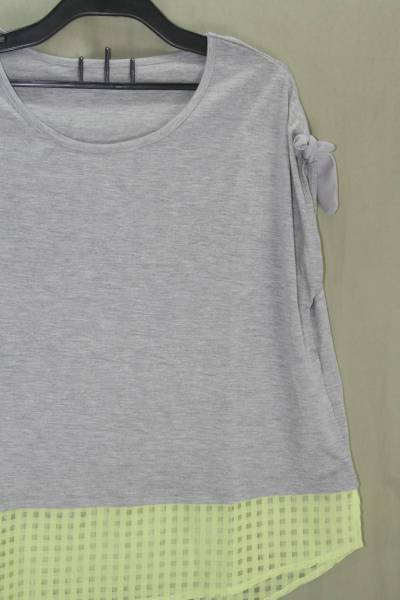 ♪♪♪新品・裾はみ出し・別素材格子柄・カットソー・グレー・M♪♪♪a-14
