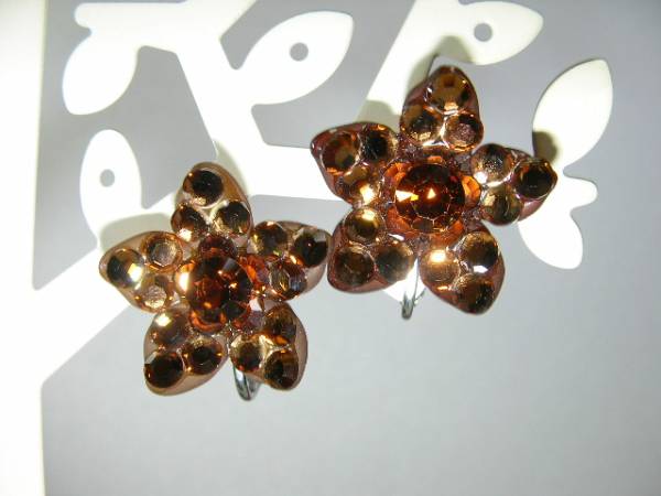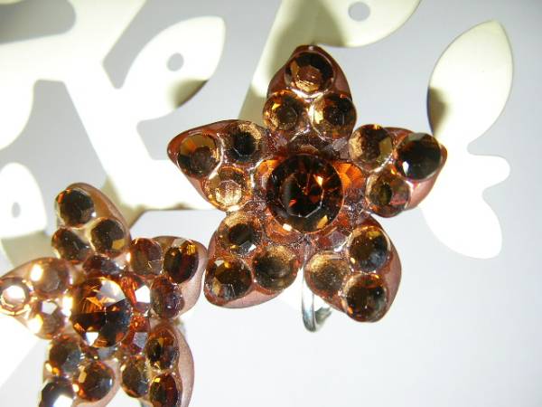 793♪キラキラ&落ち着いた雰囲気 お花イヤリング検茶系ブラウン