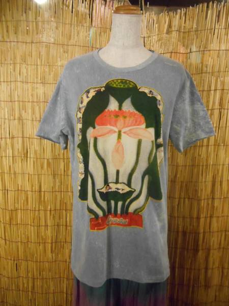 【送料込み/SALE】①新品 男女兼用 柔らかい コットン素材 ストーンウォッシュ加工 仏陀フェイス&蓮 Tシャツ エスニック MAJAM