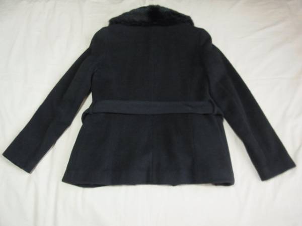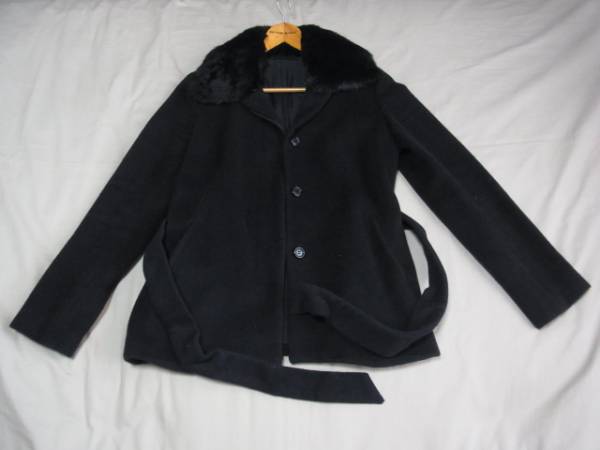 INED イネド ANGORA ラビットファー付 ハーフコート 2 黒 USED
