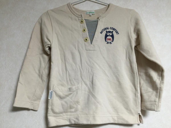 3can4on☆サンカンシオン☆ベージュのふくろうプリントトップス