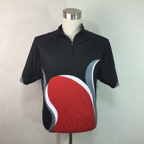 A905▼FEROTI◆黒/赤茶 半袖サイクリングジャージ 100%ポリ◆M