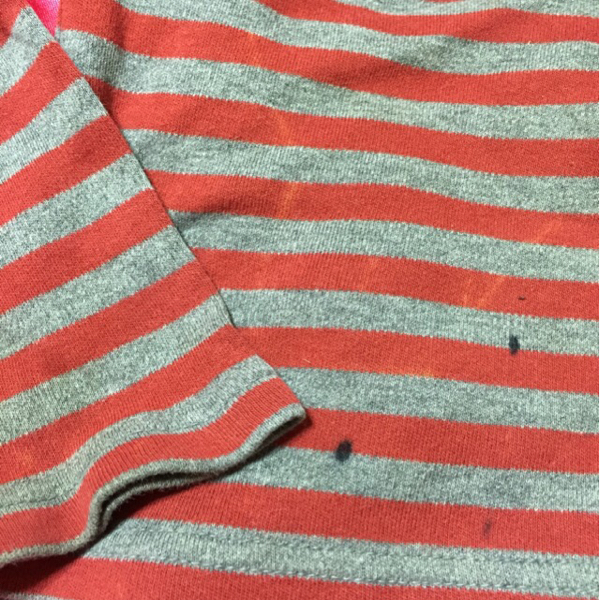 前の左下の方に油性ペンの後と、色が少し変わってる後があります。
