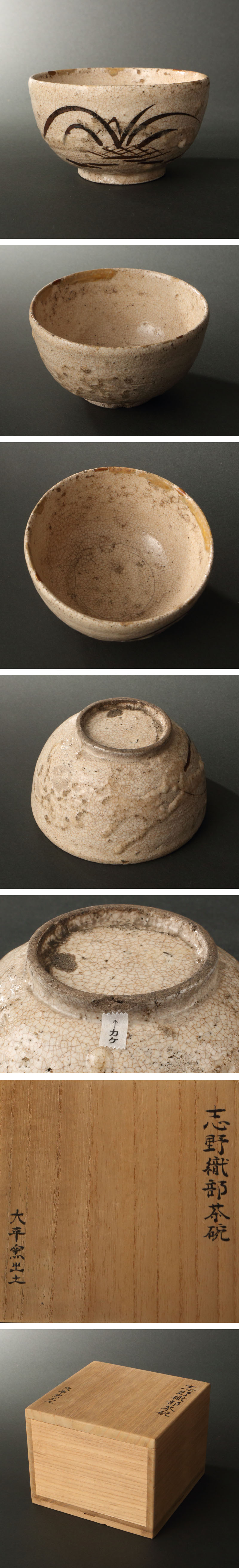 委託HK◇時代 絵志野織部茶碗 大平窯出土品(茶道具 陶磁器 陶芸 美濃焼 志野焼 絵志野 織部焼 白 発掘品 古物 骨董 古美術 茶事 茶席 )