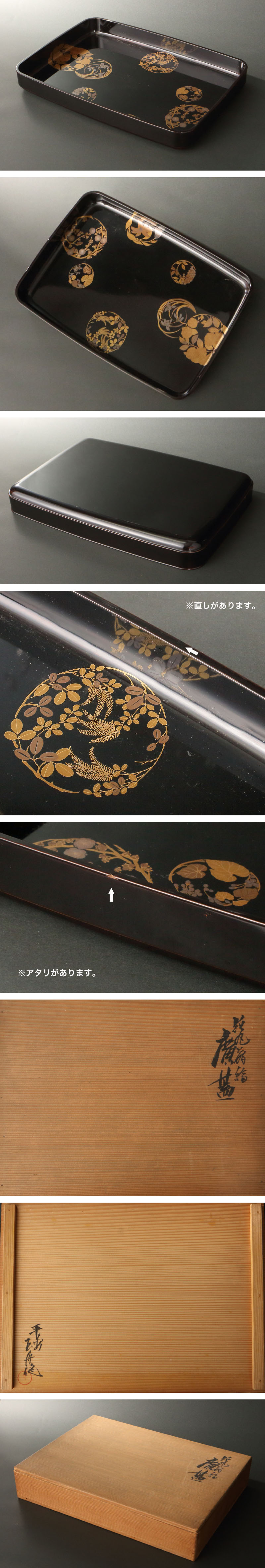 委託HK◇平安玉舟 花丸蒔絵廣蓋 共箱(茶道具 漆芸 漆器 茶事 結納 慶事 目録 金封 贈り物 衣装 盆 四方盆 各服盆 待合 飾り盆 廣盆 廣蓋)