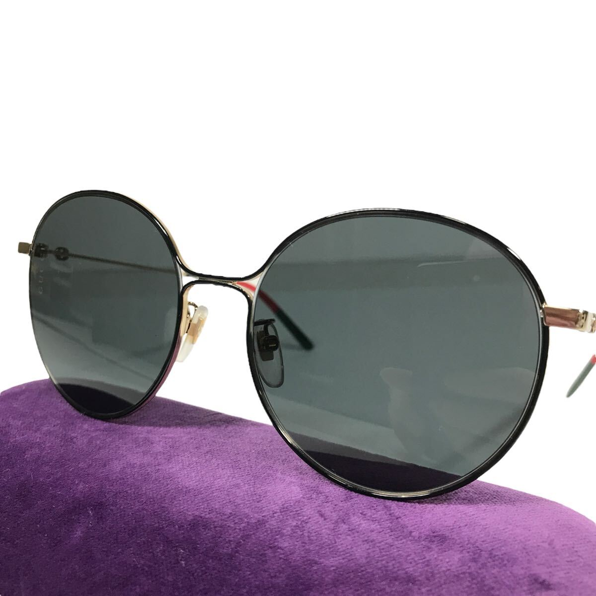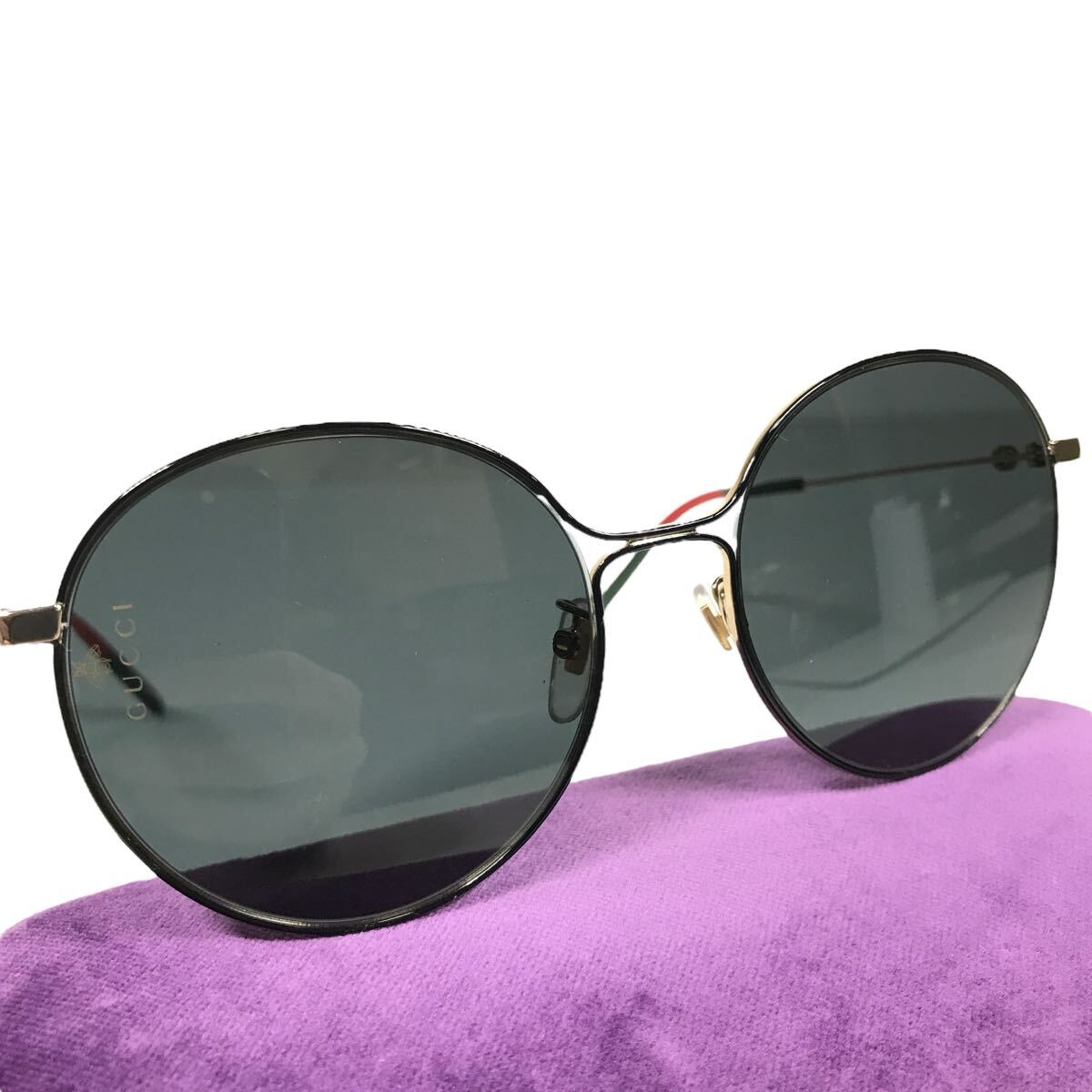 美品【グッチ】本物 GUCCI サングラス GG0395SK インターロッキングG カーキグレー色系×ゴールド色系 メンズ レディース 伊製 ケース