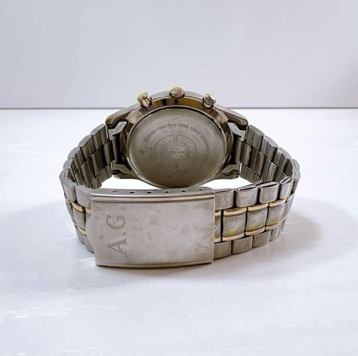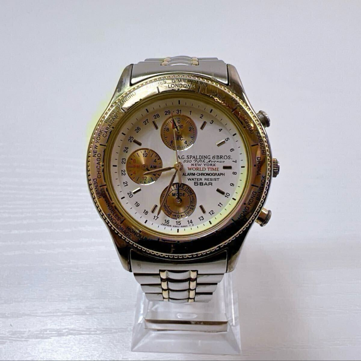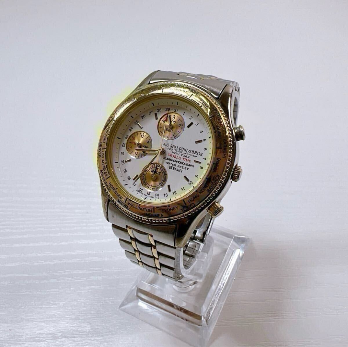 357【中古】A.G.SPALDING&BROS QZ N94J-6A40 メンズ 腕時計 シルバー/ゴールド 白文字盤 クォーツ ラウンドフェイス 動作未確認 現状品