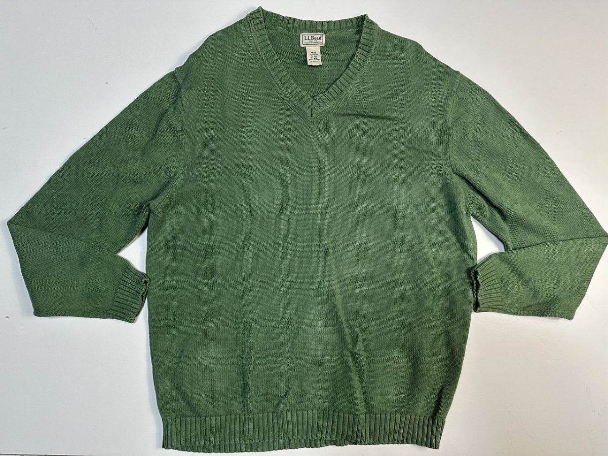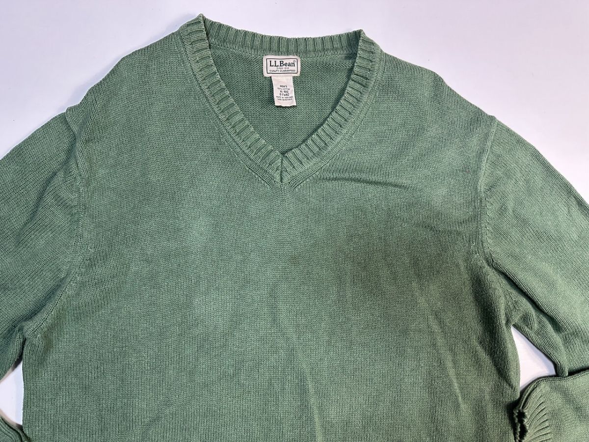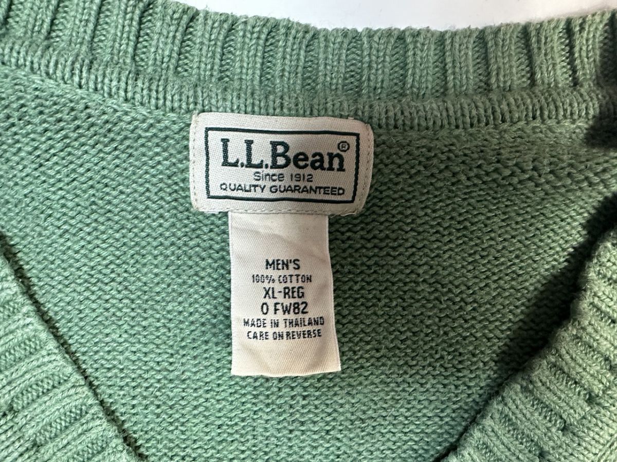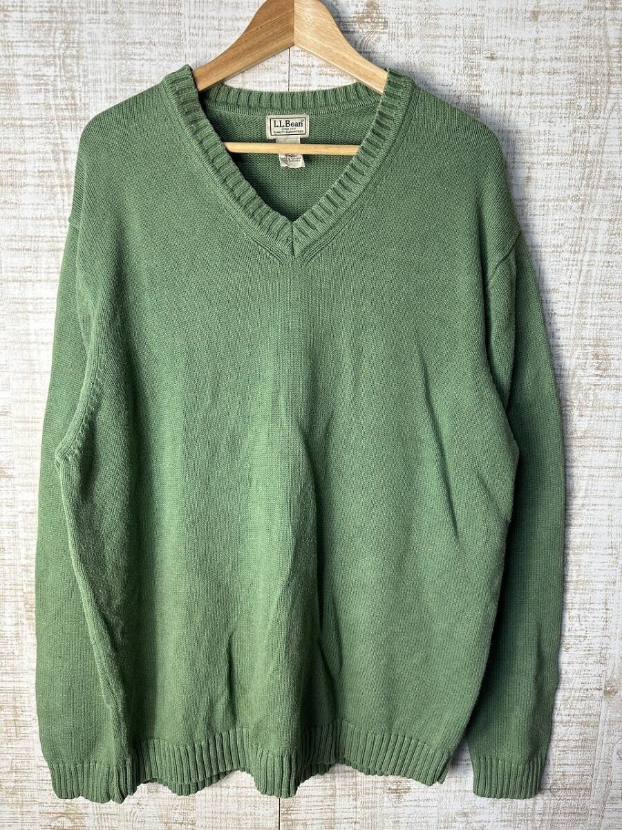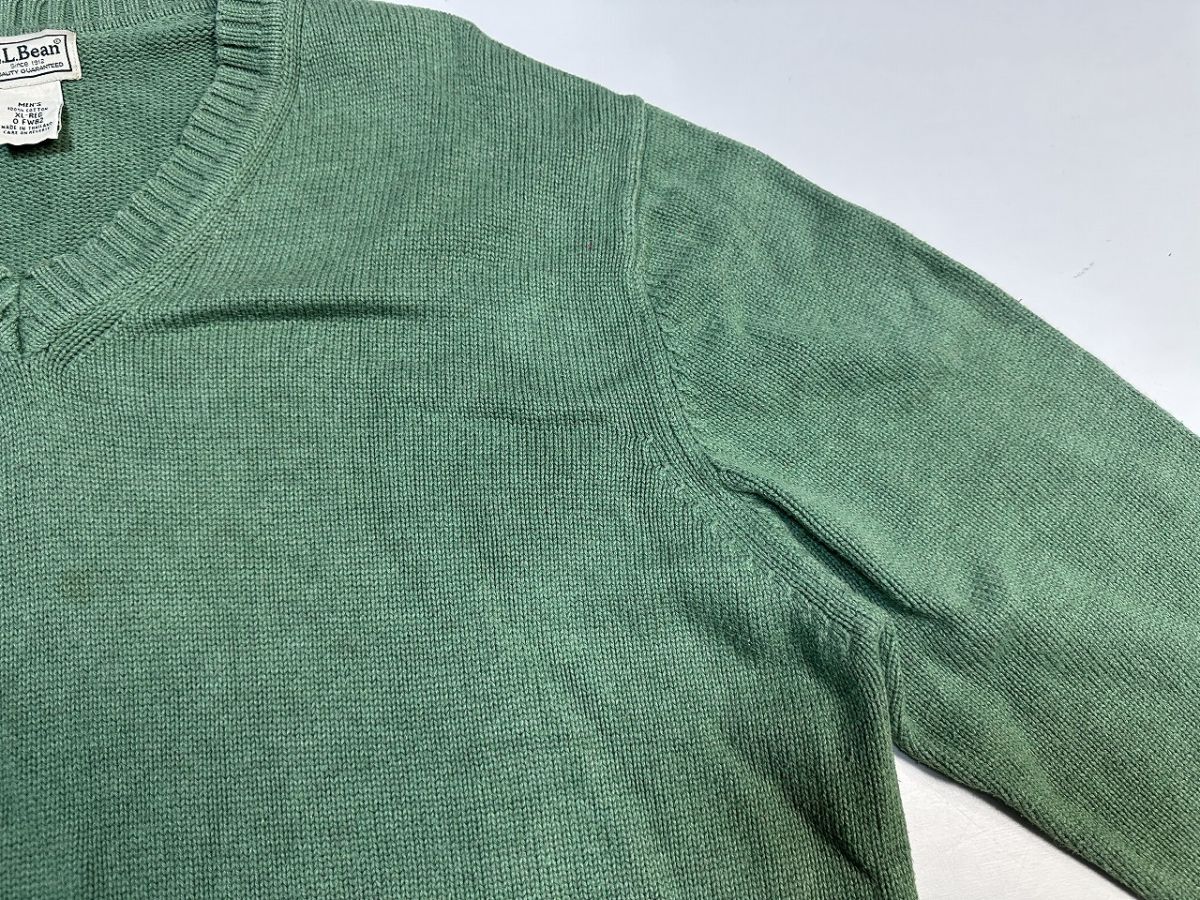 ●US USED ビッグサイズ US古着 L.L.Bean エルエルビーン 90s 90年代 ニット セーター コットンニット ハイゲージ グリーン緑【XL】