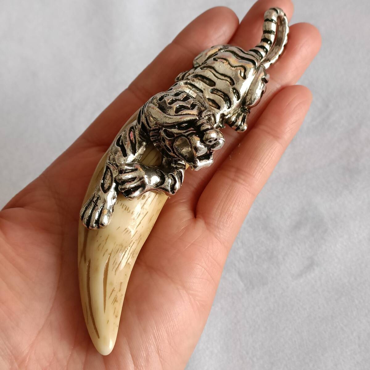 上質トラ牙の工芸品 美術品 樹脂製 浮き彫り ストラップ 置物 鑑賞 美品 コレクション 装飾 アクセサリー