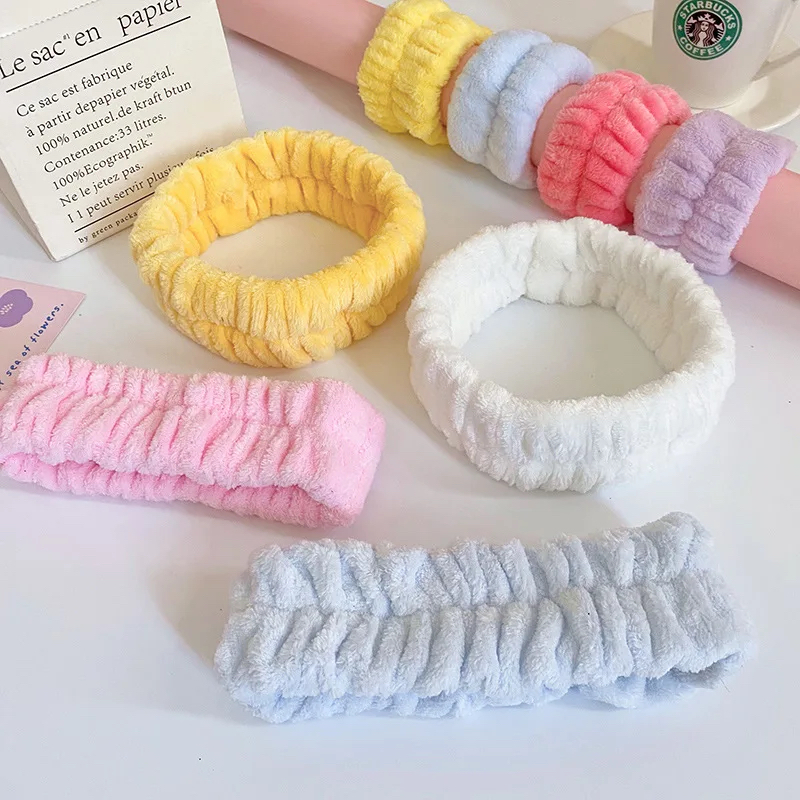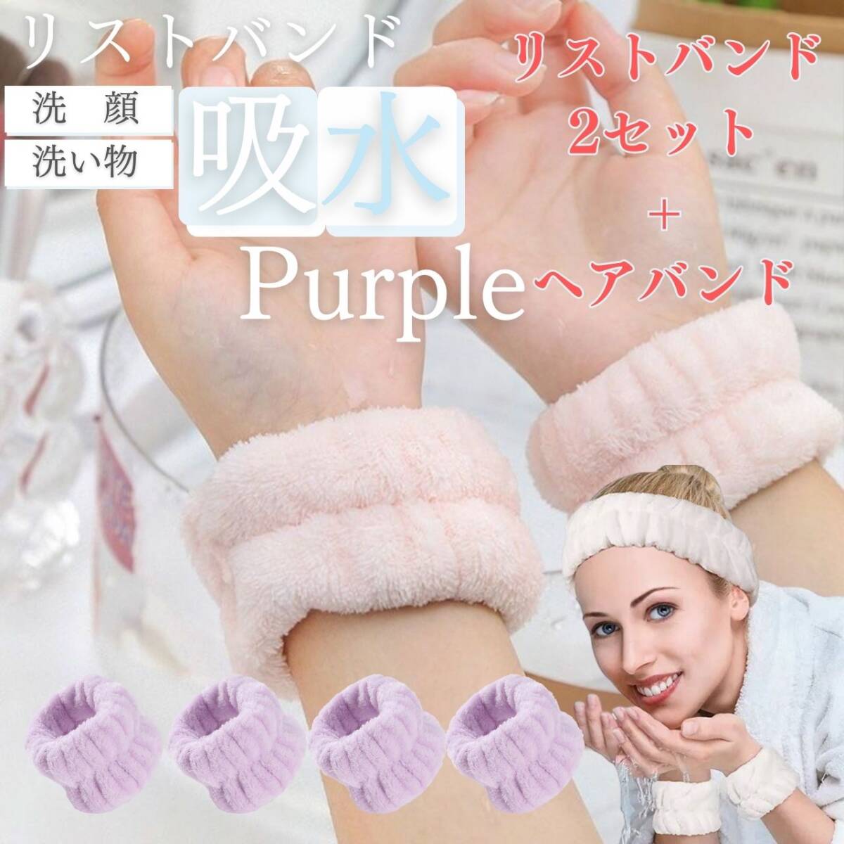 洗顔 5点セット 便利 ヘアバンド パープル フランネルリスト 吸水リストバンド