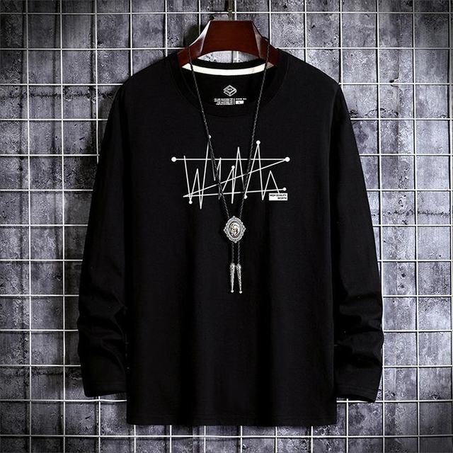 tシャツ メンズ 長袖 秋 綿100% カットソー 無地 おしゃれ お洒落 アメカジ ロゴ入り ストリート ブラック 3XL