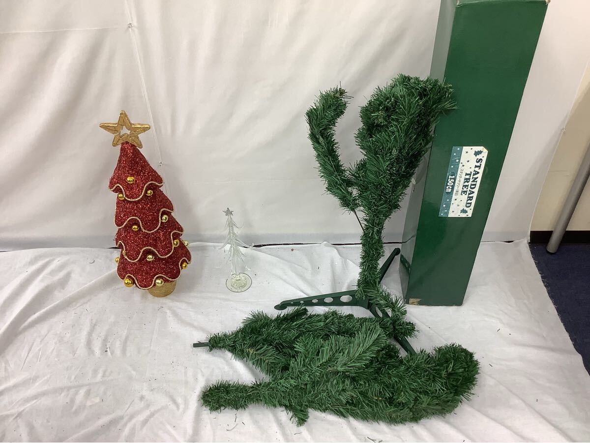 クリスマスツリー 150cm 組立式 STANDARD TREE + 卓上ツリー2点セット ガラスツリー オーナメント付き 現状品