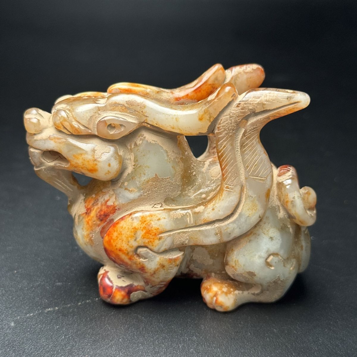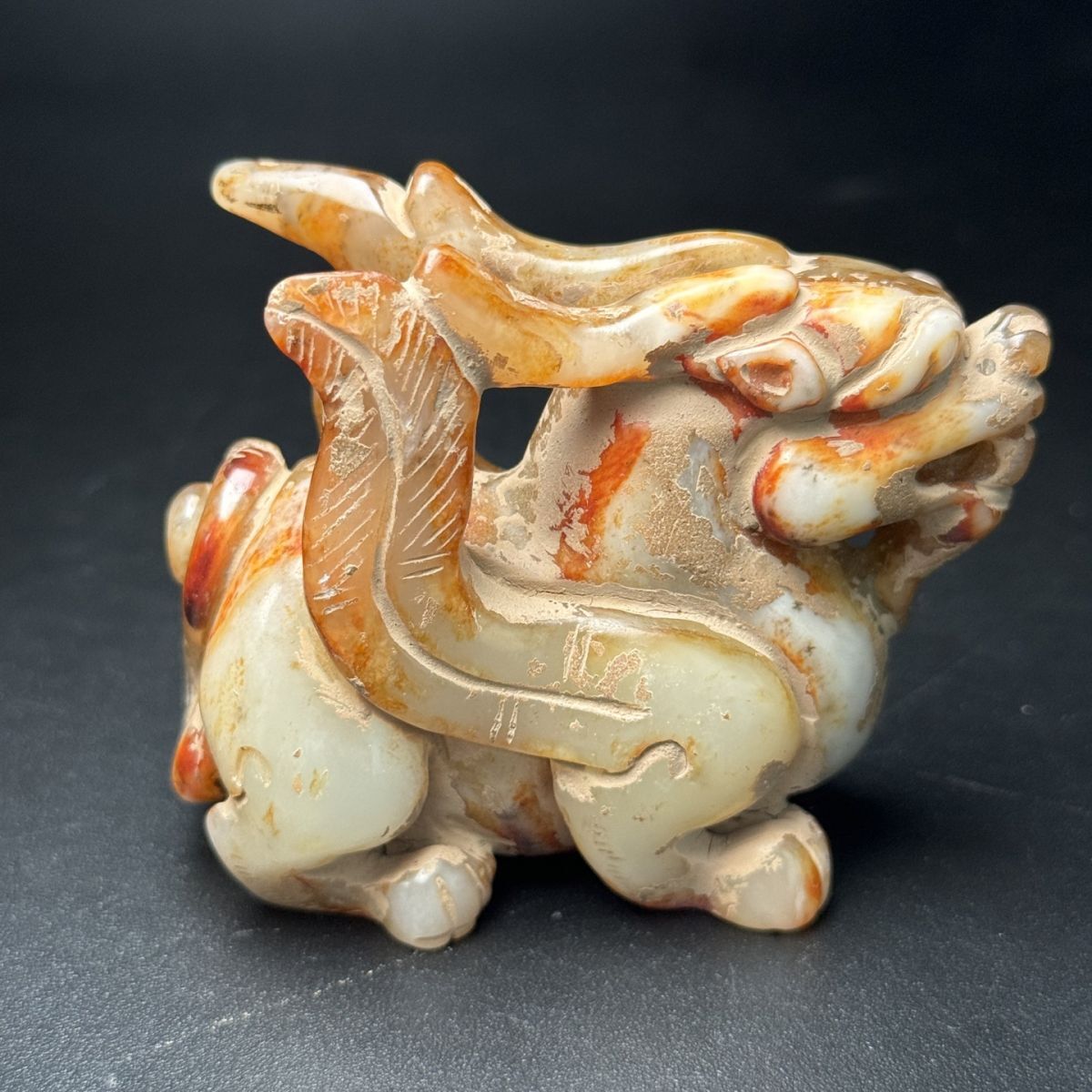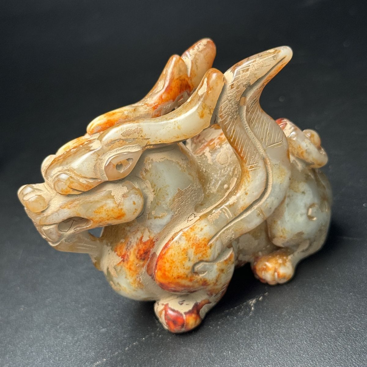 【永】明時代 和田玉 麒麟 瑞獸彫 極細工 置物擺件 古美術品 時代物 古董品 収集 古美味 旧家蔵出 中国唐物 257g