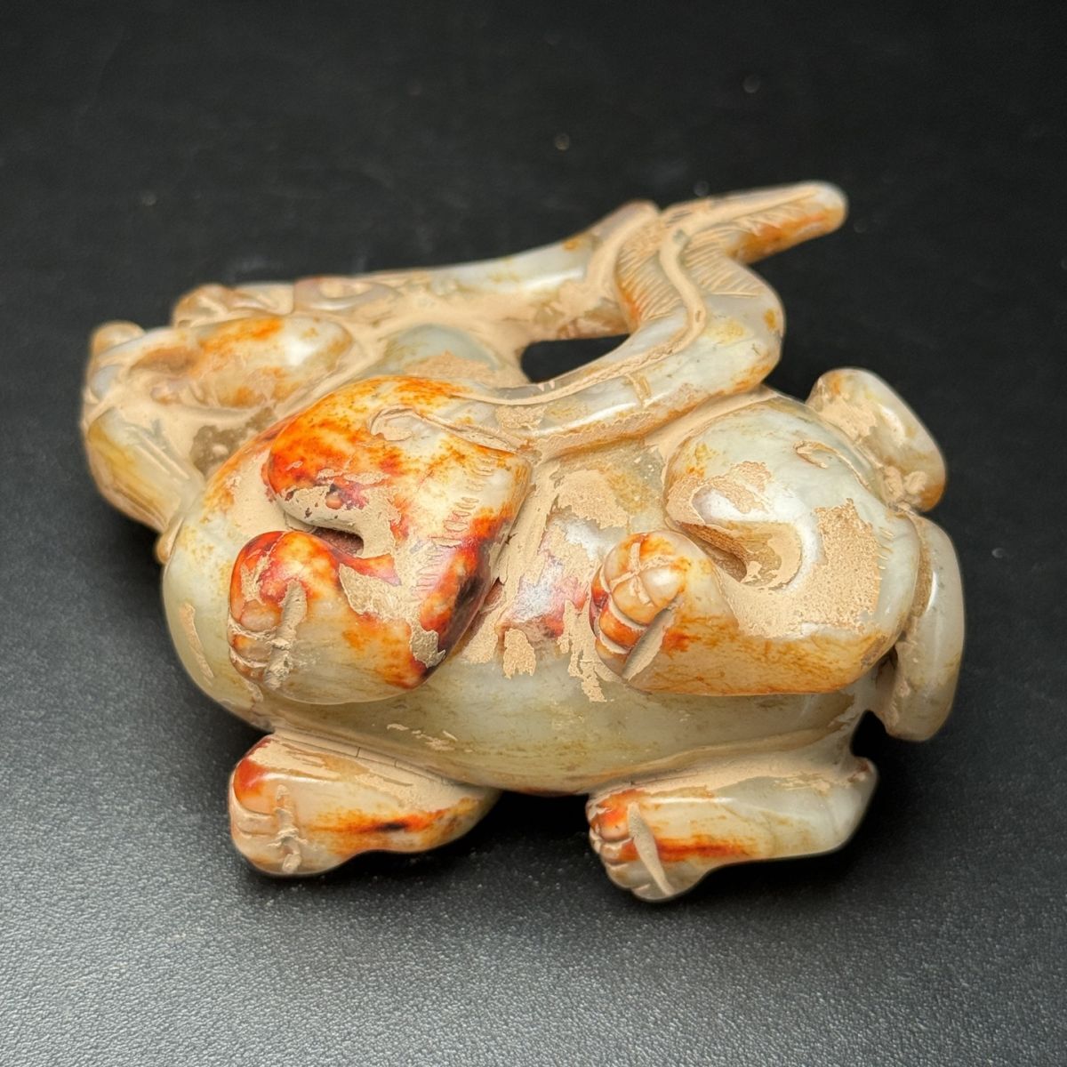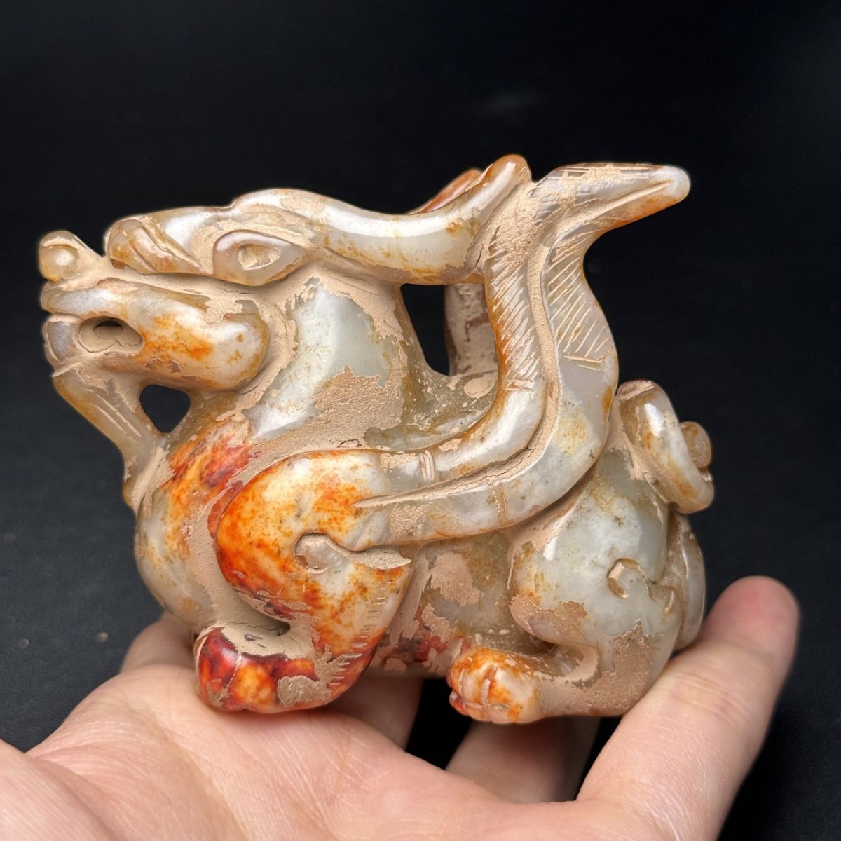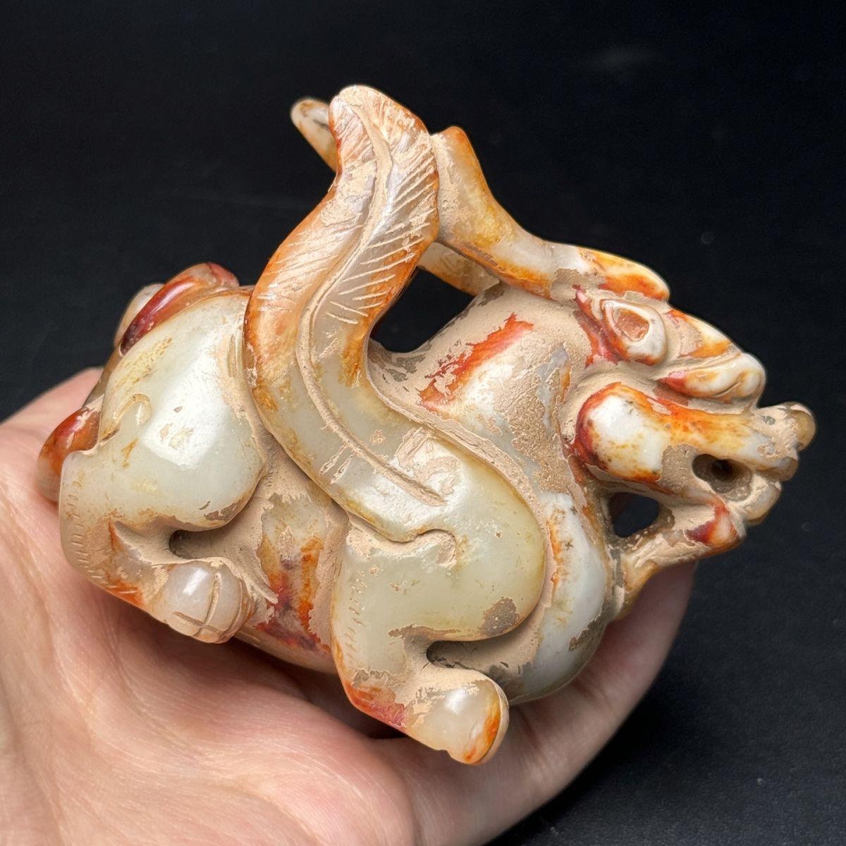 【永】明時代 和田玉 麒麟 瑞獸彫 極細工 置物擺件 古美術品 時代物 古董品 収集 古美味 旧家蔵出 中国唐物 257g