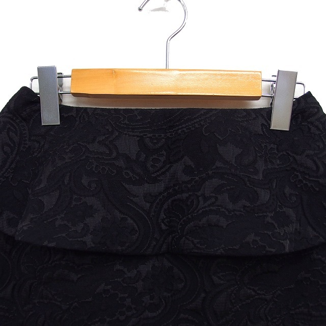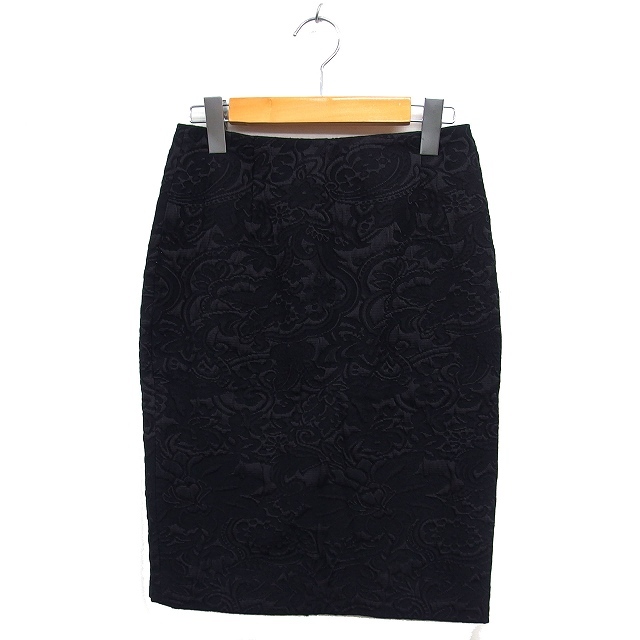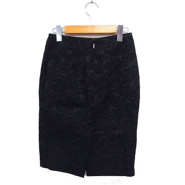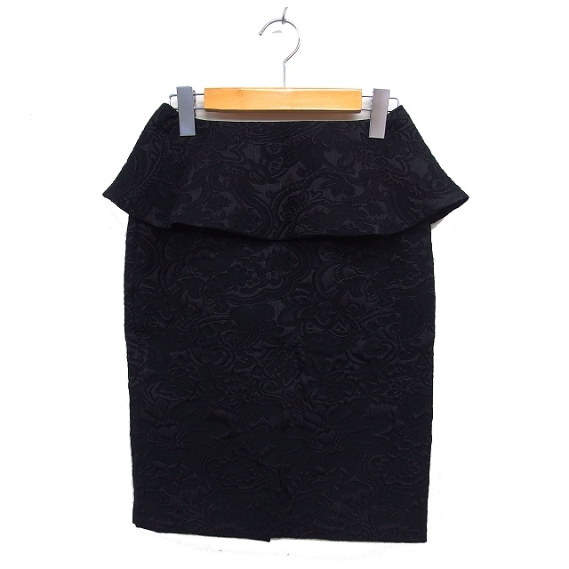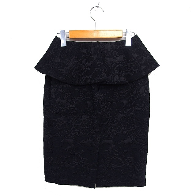 エポカ EPOCA ジャガード タイト スカート ひざ丈 ペプラム バックジップ ウール混 38 黒 ブラック /NT35 レディース