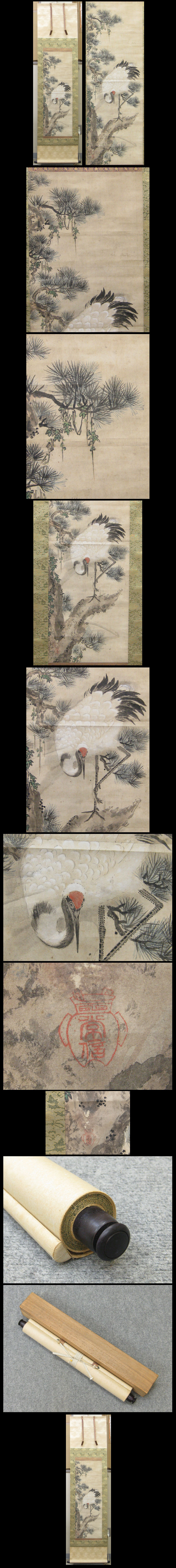 【狩野常信】1636~1713年。 江戸前・中期の狩野派の画家。幼名は三位、通称は右近・中務卿。号は養朴・古川等。 父である木挽町狩野家の祖尚信を継いで第二代となる。父の歿後、叔父探幽の薫陶を受け、 幕府の奥絵師となる。のち法印に叙せられた。また中院通茂に和歌を学び能くする。 正徳3年歿、78才。 ★商品サイズ★ ■掛軸 182×46cm ■作品 96×33cm ★商品の状態★ 真贋が不明なので模写として出品いたします。 作品に時代のしみ汚れ、少しの剥げがあります。 ご承知のうえご入札をお願いします。 時代など詳しくは画像にてよく確認のうえでご検討いただければと思います。 どうぞよろしくお願いいたします。 |