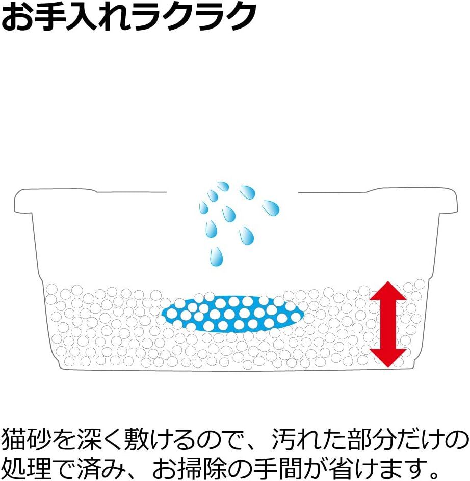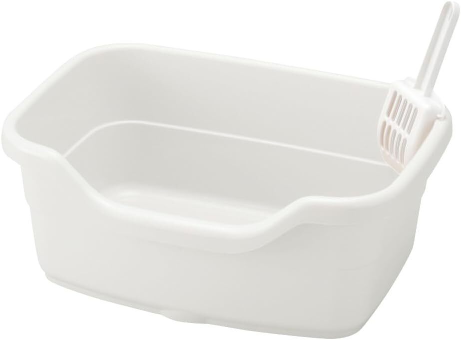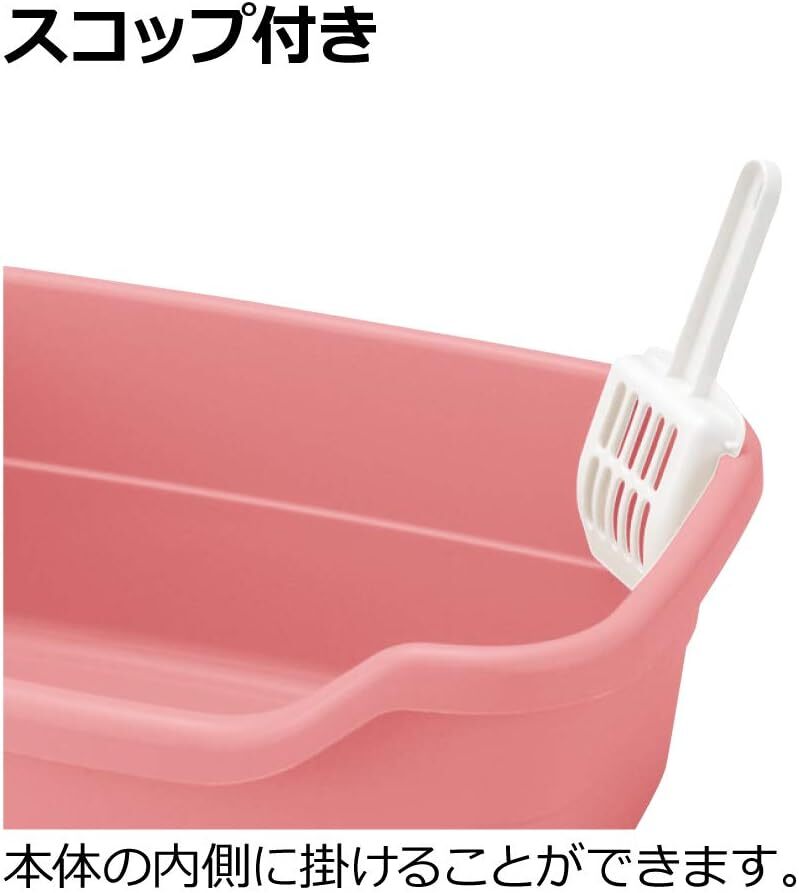 お手入れラクラク 猫砂を深く敷けるので、汚れた部分だけの処理で済み、お掃除の手間が省けます。     スコップ付き 本体の内側に掛けることができます。