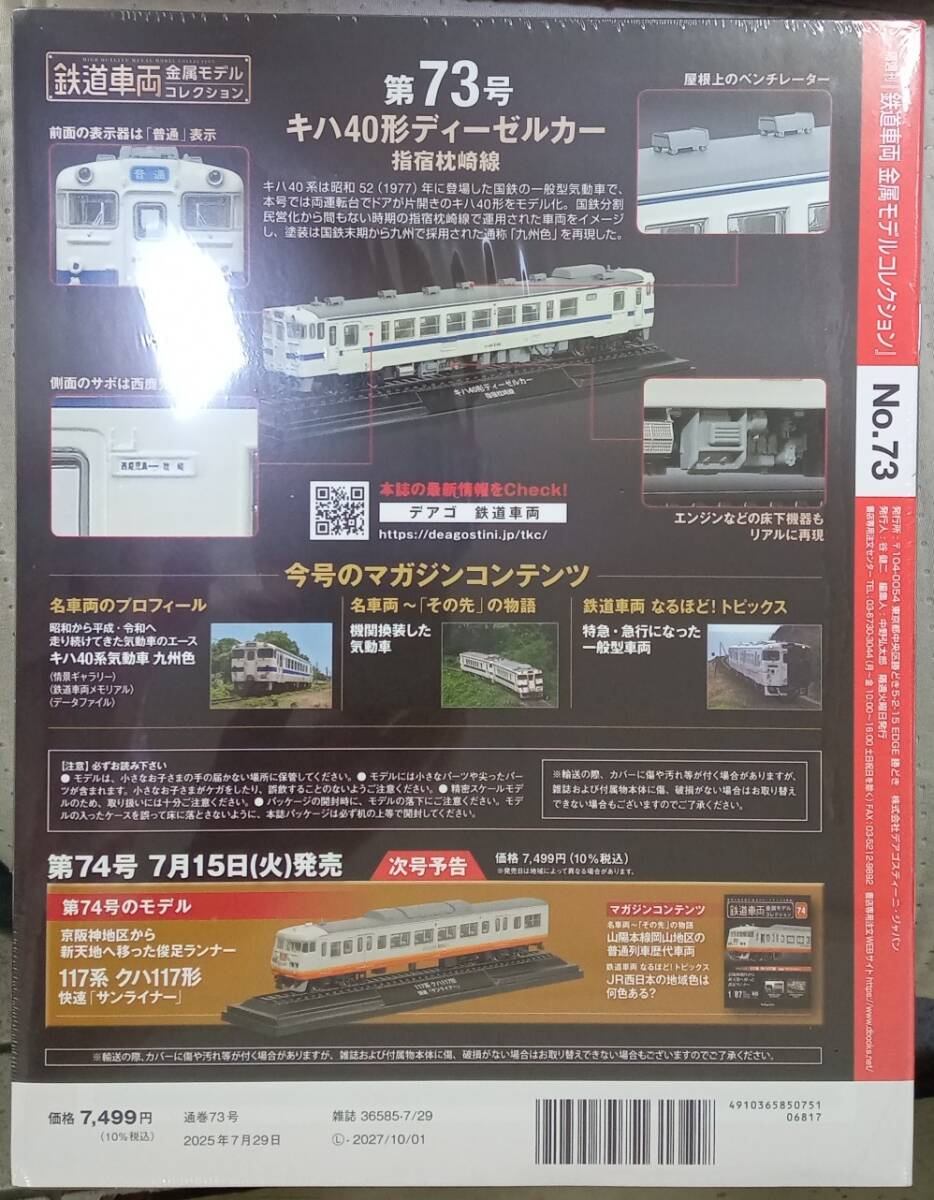 ☆ディアゴスティーニ 1/87 鉄道車両金属モデル No.73 キハ40形 ディーゼルカー 指宿枕崎線☆新品未開封品 在庫1個!