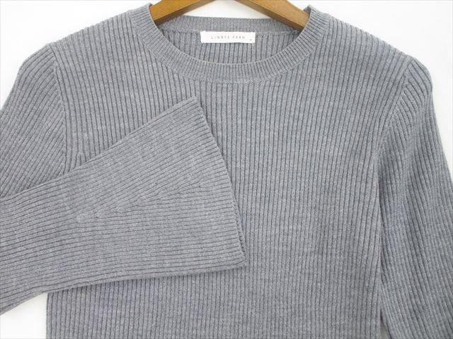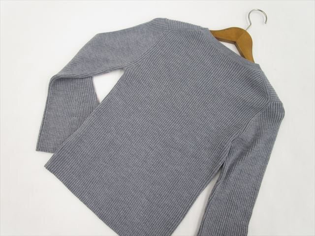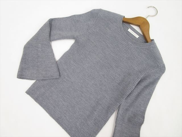 洗える トランペットスリーブ 長袖 ラウンドネック ニットカットソー M グレー