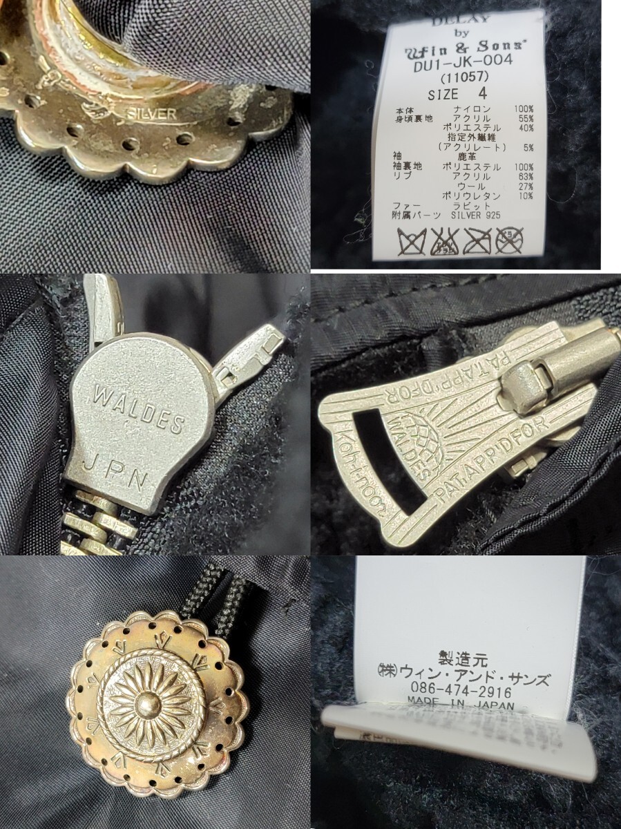 【 定価129,600円 極美品 】ディレイバイウィンアンドサンズ DELAY BY WIN&SONS タディアンドキング TADY&KING シルバー925コンチョ 袖鹿革 N-3B フライトジャケット 4 日本L相当