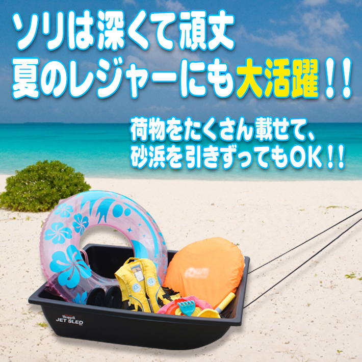 雪や砂、泥などで汚れた荷物などを車に載せる際、荷室に載せたソリの中にまとめて放り込めば、各サイズともしっかりとした深さがあるので車内を汚すこと無く大変便利です。潮干狩り、海水浴、砂遊びなどのレジャーやアウトドアシーン等幅広くご利用いただけます。