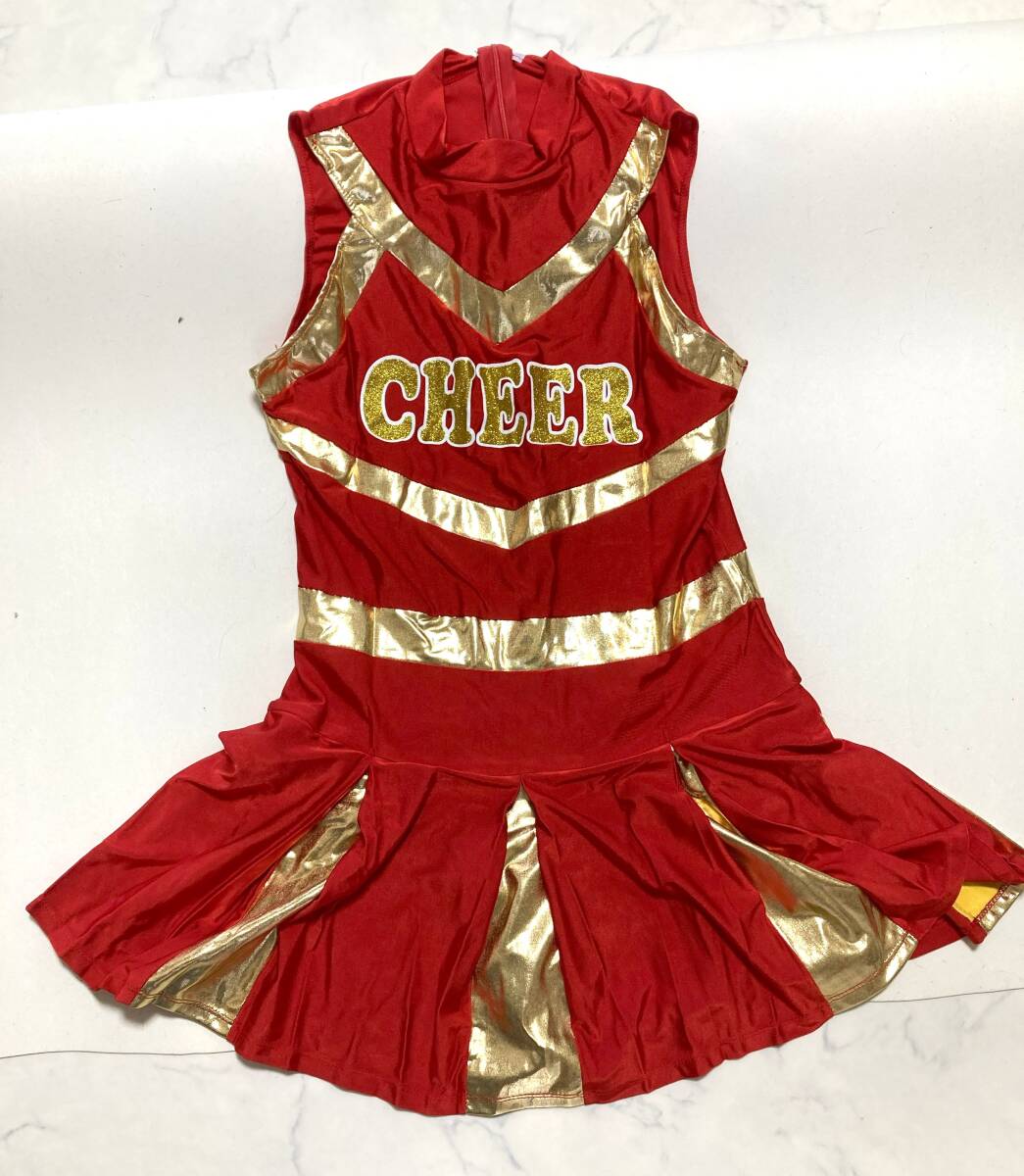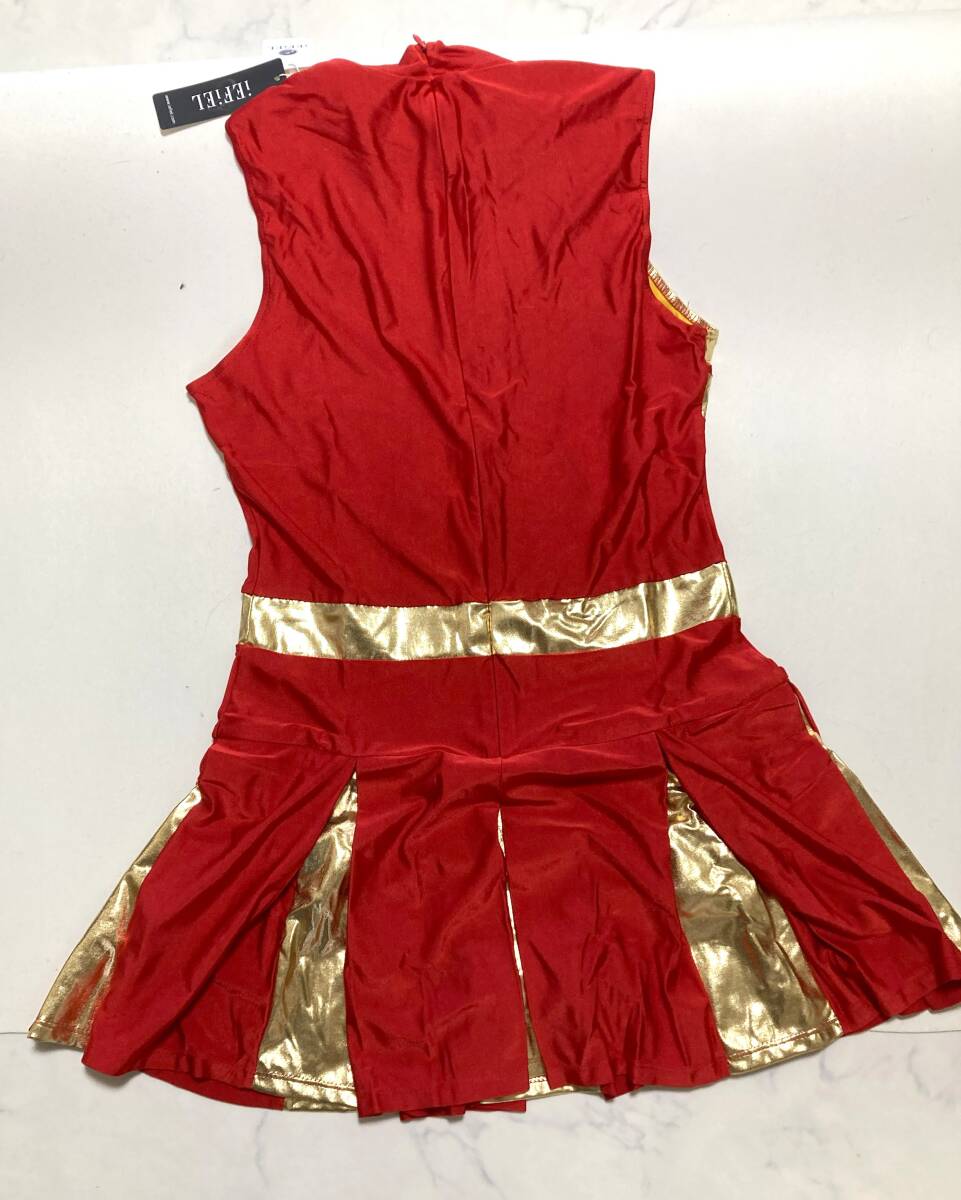 赤2XLサイズ チアリーディングユニフォーム/レオタードインブリーフ/光沢 つるつる ナイロン/ノースリーブワンピース/ファスナー付き