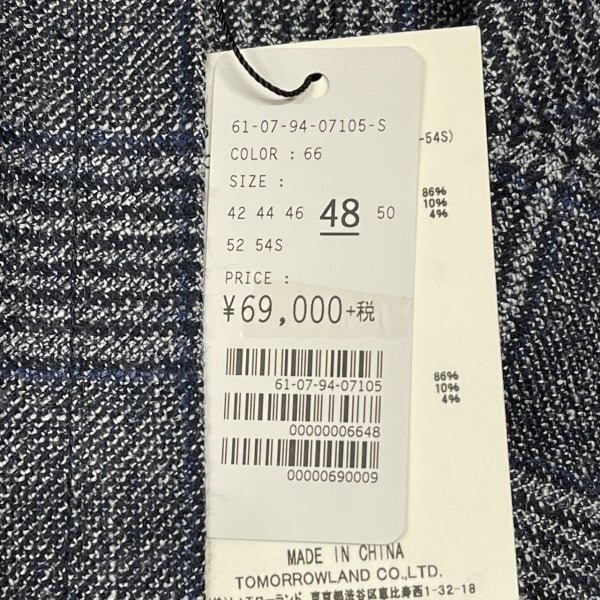 新品 75900円 TOMORROWLAND 2Bジャケット トゥモローランド  PILGRIM ピルグリム ロロピアーナ イタリア ファブリック 三者混 YL2526
