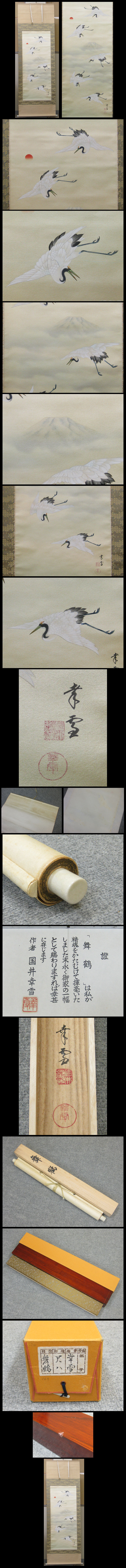 ★掛軸 国井幸雪 絹本「舞鶴」富士鶴図/肉筆 共箱 二重箱 真作