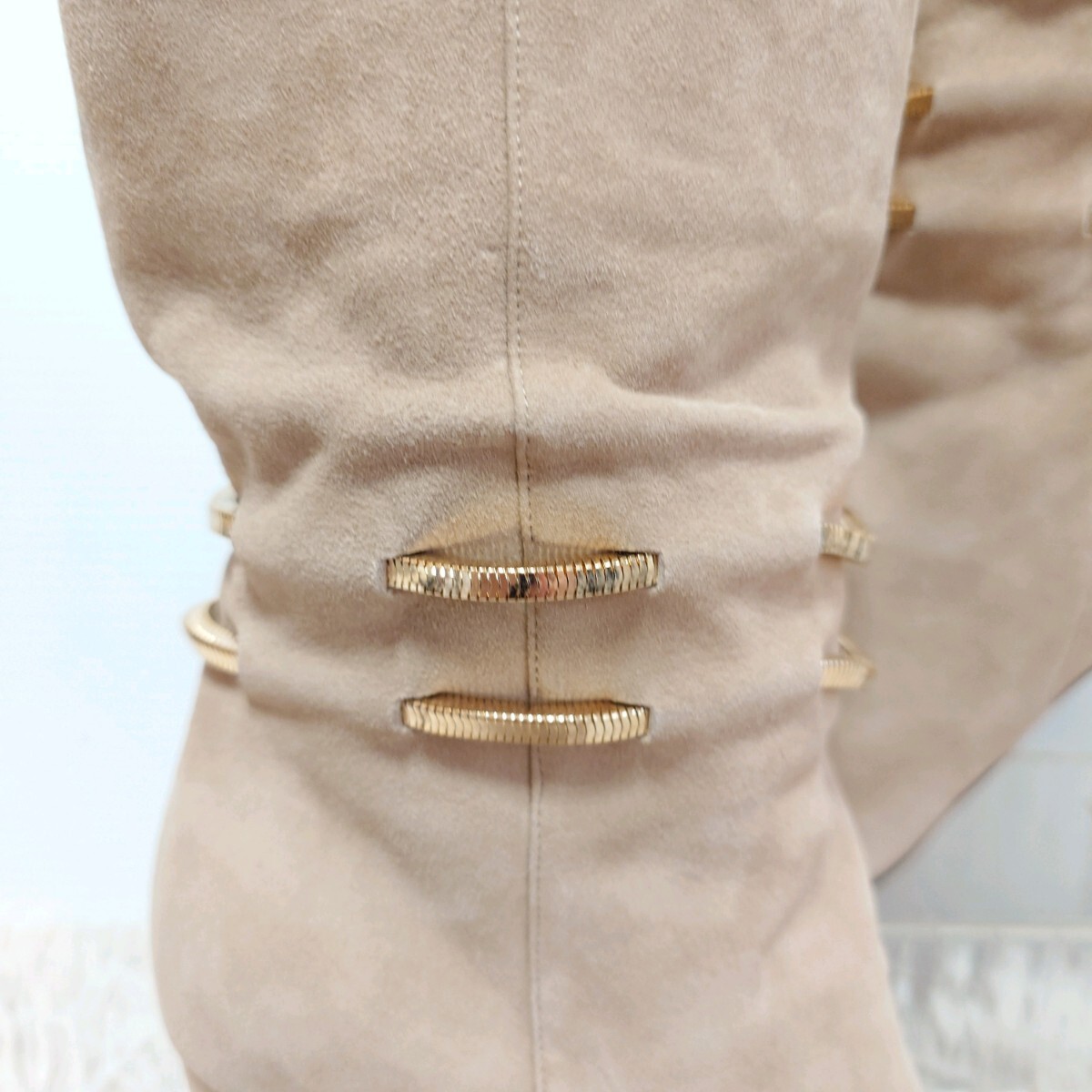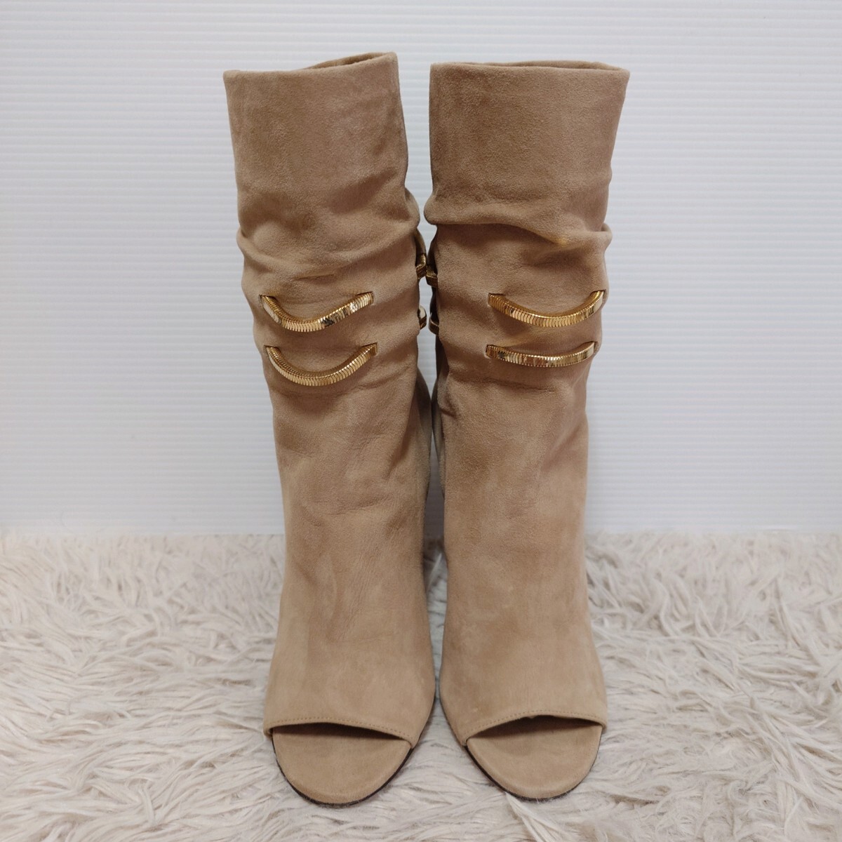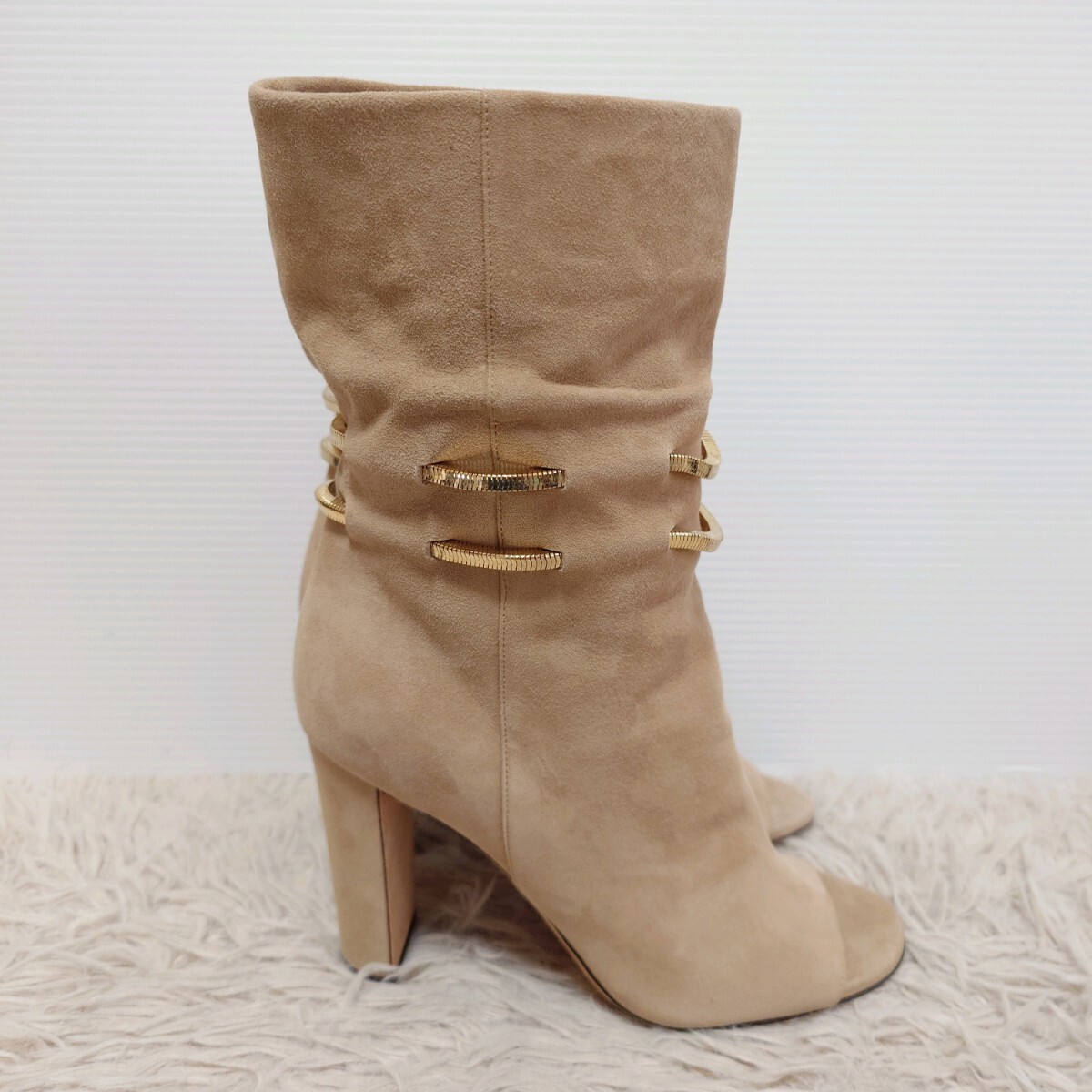 ☆Jimmy Choo ジミーチュウ イタリア製 Made in ITALY スエード ブーツ 靴 36 1/2 23.5cm相当 高さ28.5cm ヒール高9.5cm レディース ライトブラウン