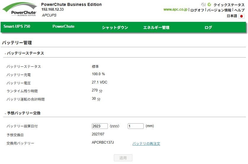 | メーカー/機種/型番 | DELL Smart-UPS 750 LCD DLT750J |