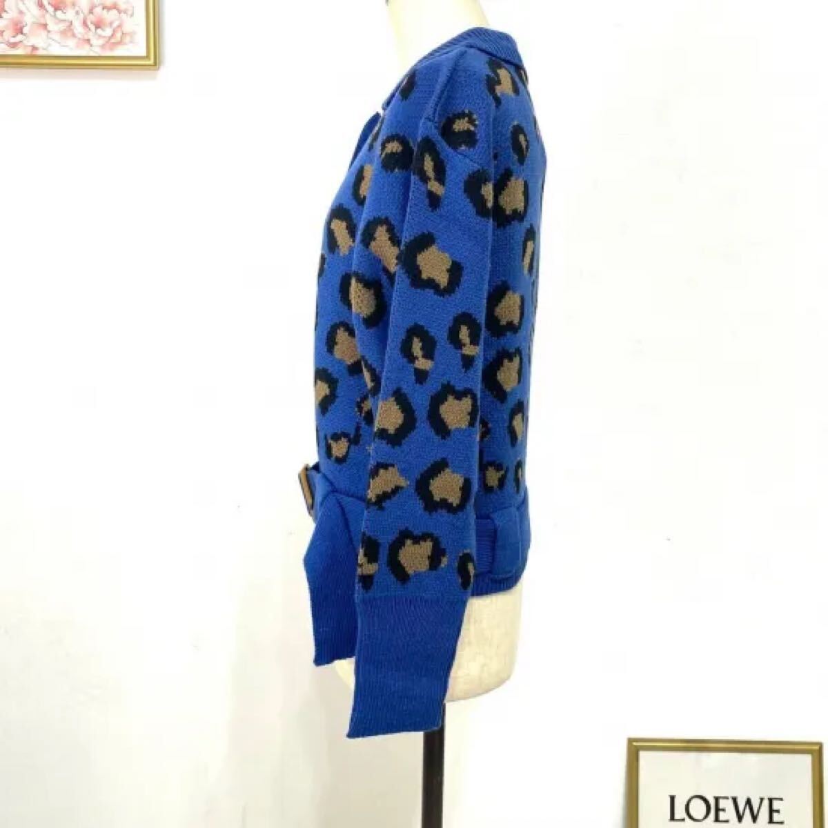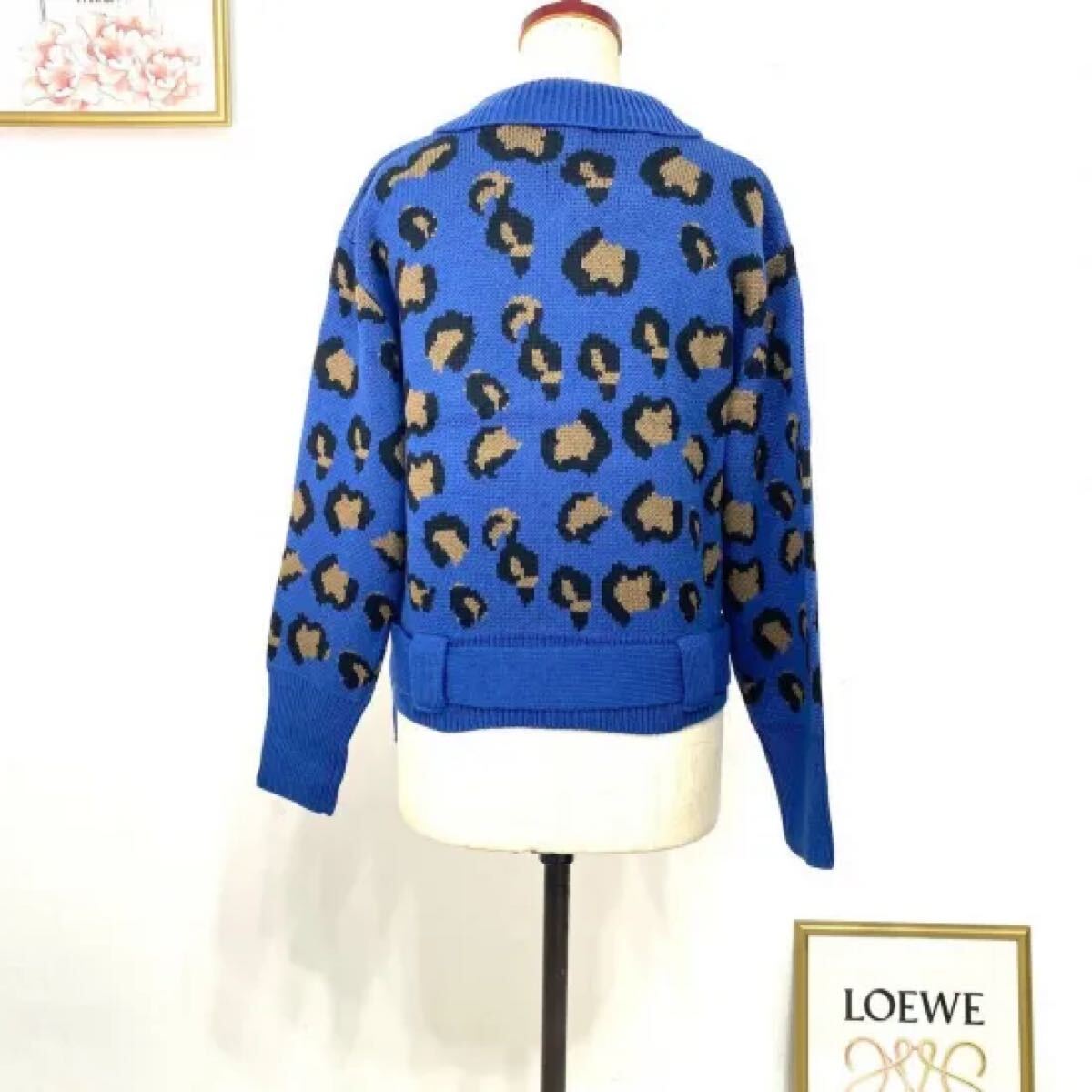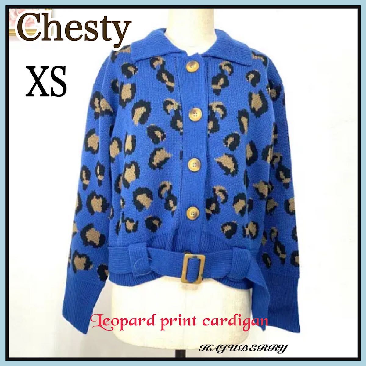 【CHESTY】レオパード柄カーディガン ブルー 青 ウール混 ニット XS ヒョウ柄 セーター チェスティ