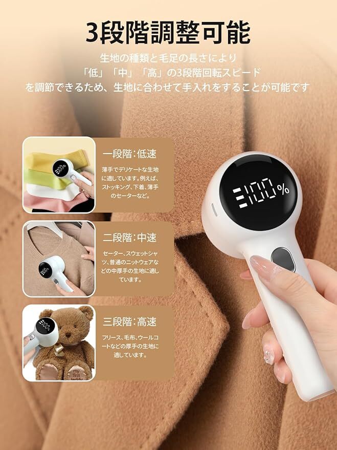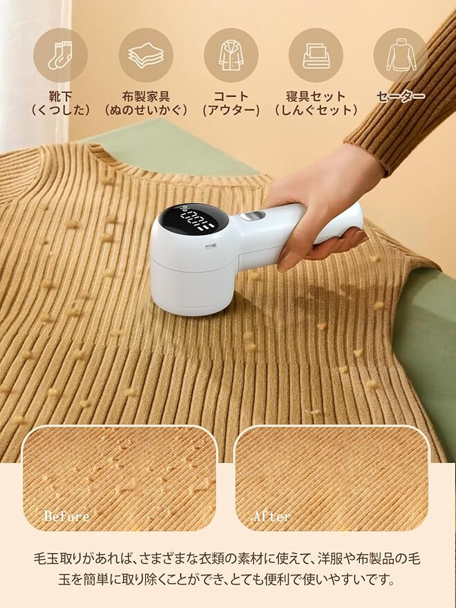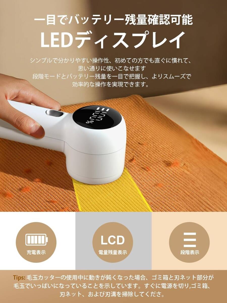 Amazon | 【2025新登場 アップグレード版 人気&LCD画面&替え刃付属】毛玉取り けだまとり 電動 毛玉カッター LCD液晶ディスプレイ付き 3段階のスピード調整 Type-C充電式 強力6枚刃 替え刃1枚付属 安全装置 毛玉取り器 どんな衣類でも靴下寝具カーペット持ちやすく軽量 旅行 専業主婦 家庭用ギフト(ホワイト)