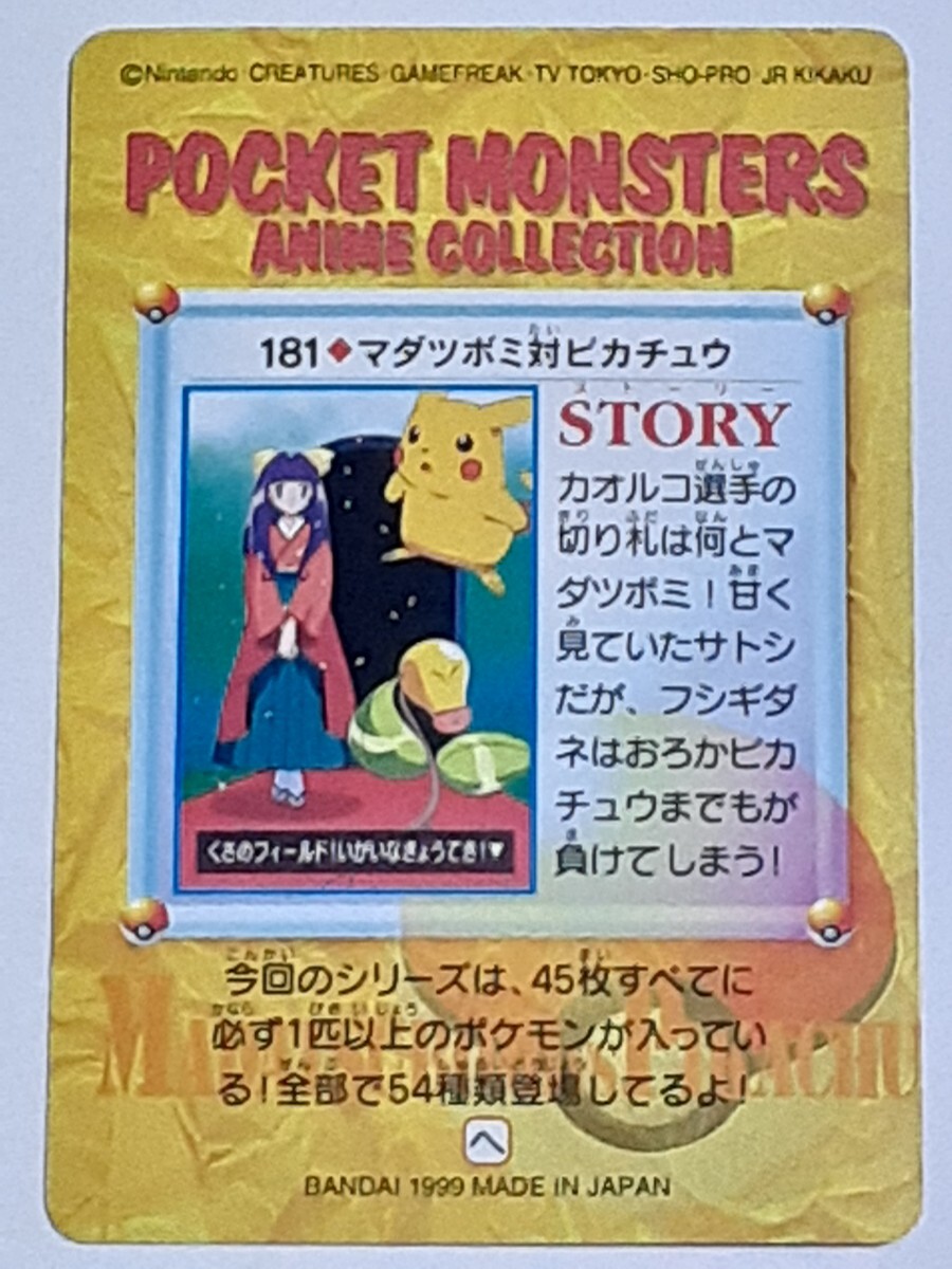 ☆1999年 カードダス ポケットモンスター アニメコレクション №181 『マダツボミ対ピカチュウ』 Carddass POCKET MONSTERS Pokemon