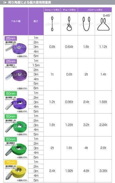 強度・弾性・耐久性・防腐性に優れている繊維の詰まったポリエステル素材のベルトで、あらゆる吊り荷をマルチにやさしく包み込み、安全に吊り上げます。 建築・造園・造船・荷役業など、さまざまな現場で大活躍! 【商品仕様】 全長:4m ベルト幅:75mm 最大使用荷重(能力) ・ストレート吊り:2400kg ・チョーク吊り:1920kg ・バスケット吊り:4800kg 材質:ポリエステル100% 両端アイ型 CE規格品 【商品内容】 スリングベルト ×10 【注意事項】 ・上記各最大使用荷重を超える吊り荷は絶対に吊らないようにお願いいたします。 ・使用時は吊り上げ物の角にパッドなどを必ず当ててご使用ください。 ・繊維製品ですので寸法に多少の誤差があります。ご了承ください。 |