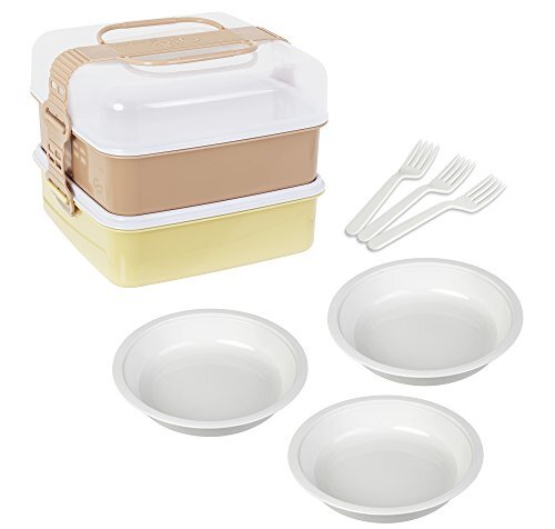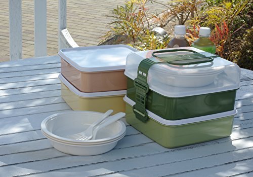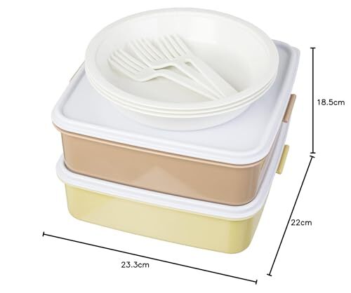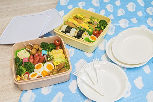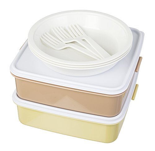 サンコープラスチック(SankoPlastic) 弁当箱 ピクニックケース リオパック L型 2段 取り皿3枚・フォーク3本付き アースベージュ