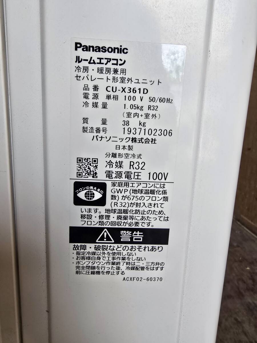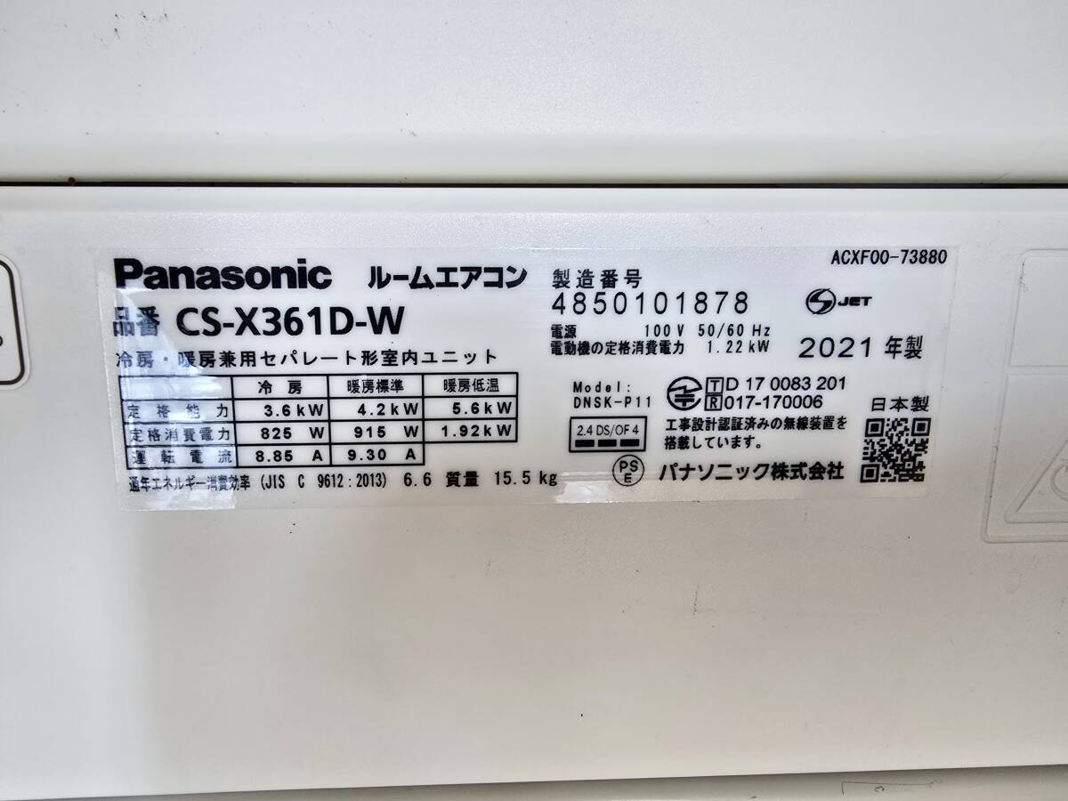 ■5357■ Panasonic CS-X361D-W[内機]/CU-X361D[外機] ルームエアコン/2021年製