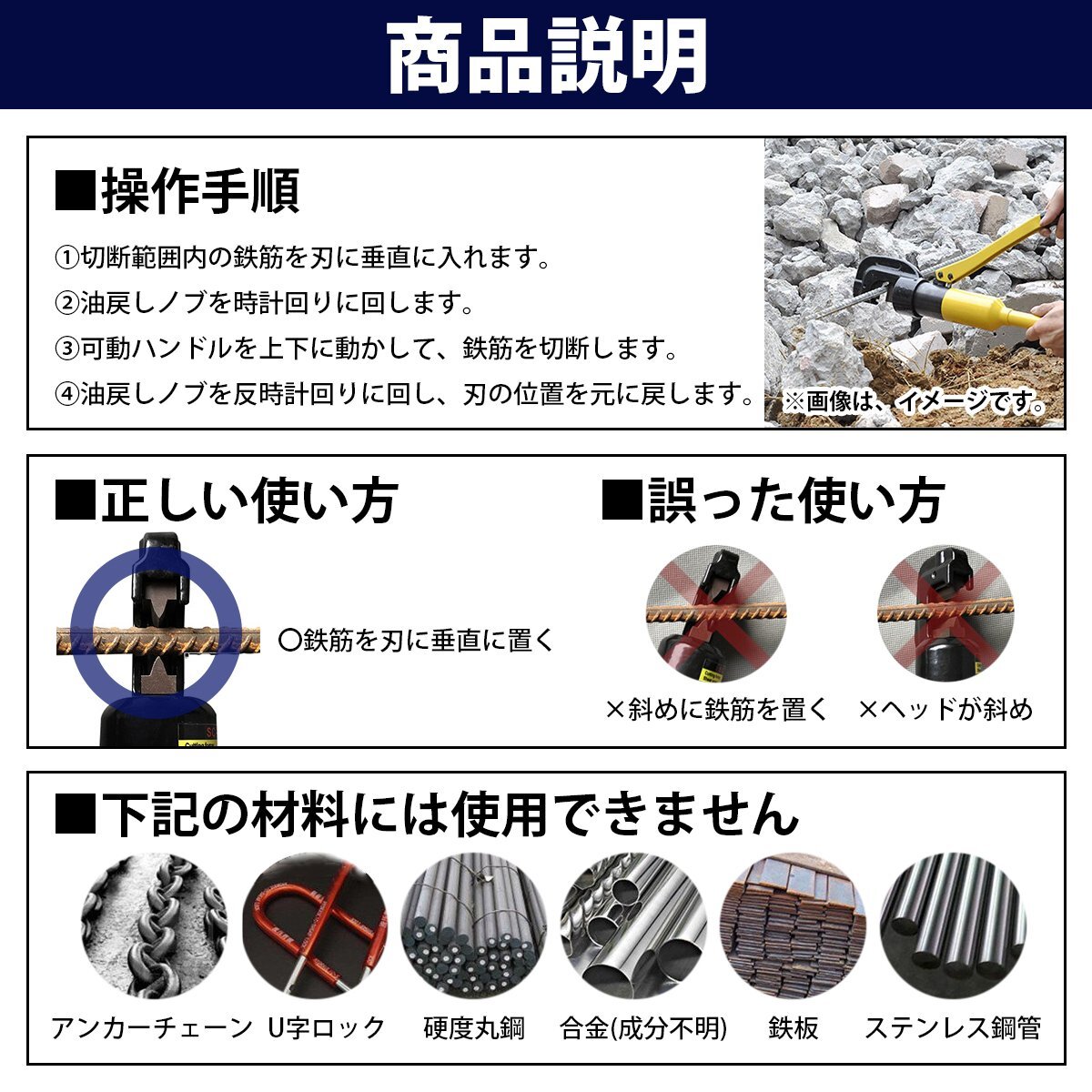 商 品 説 明鉄筋もらくらく切断できる、手動油圧式鉄筋カッターです。