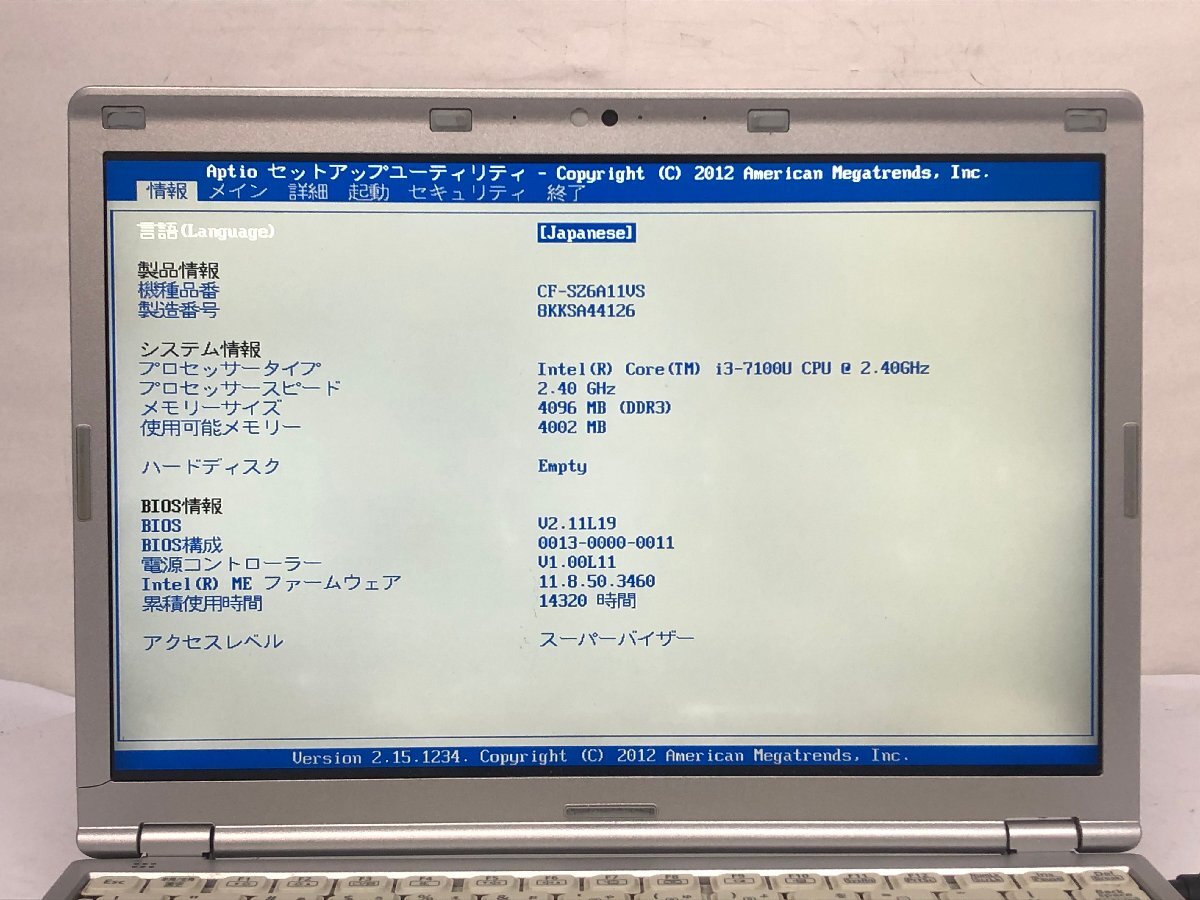 ジャンク/ Panasonic CF-SZ6A11VS Intel Core i3-7100U メモリ4.1GB ストレージ無し 【K22758】