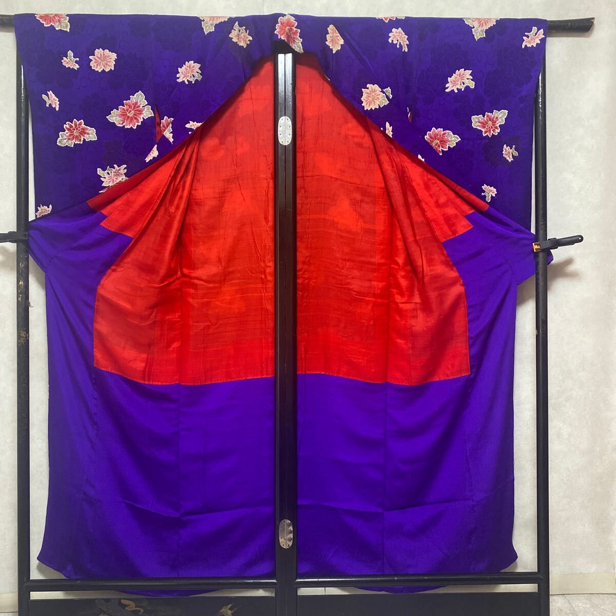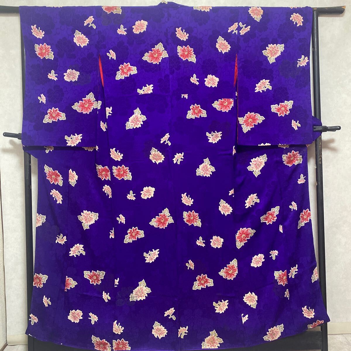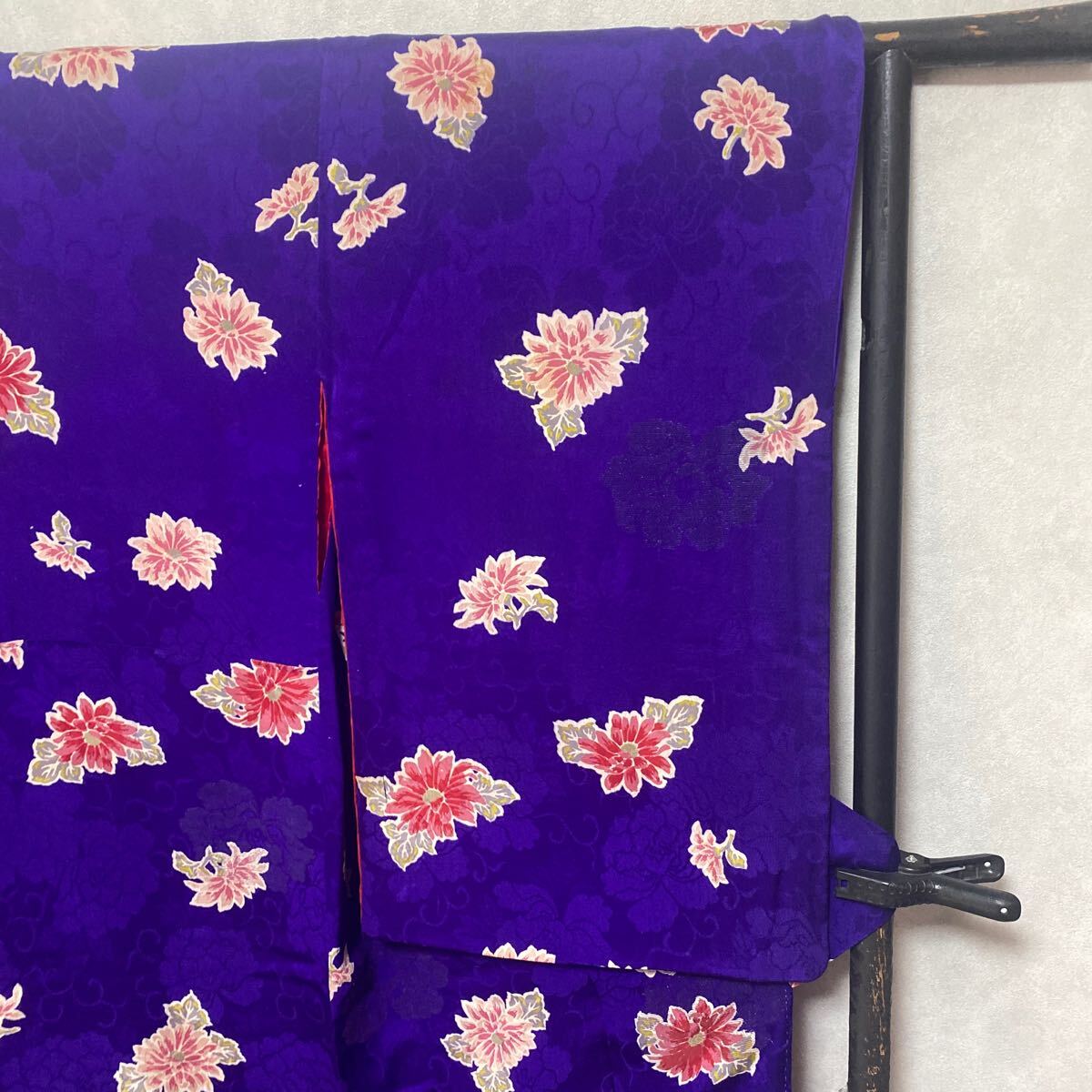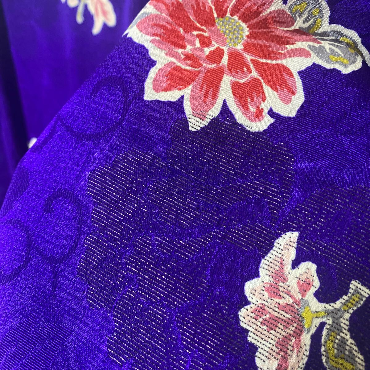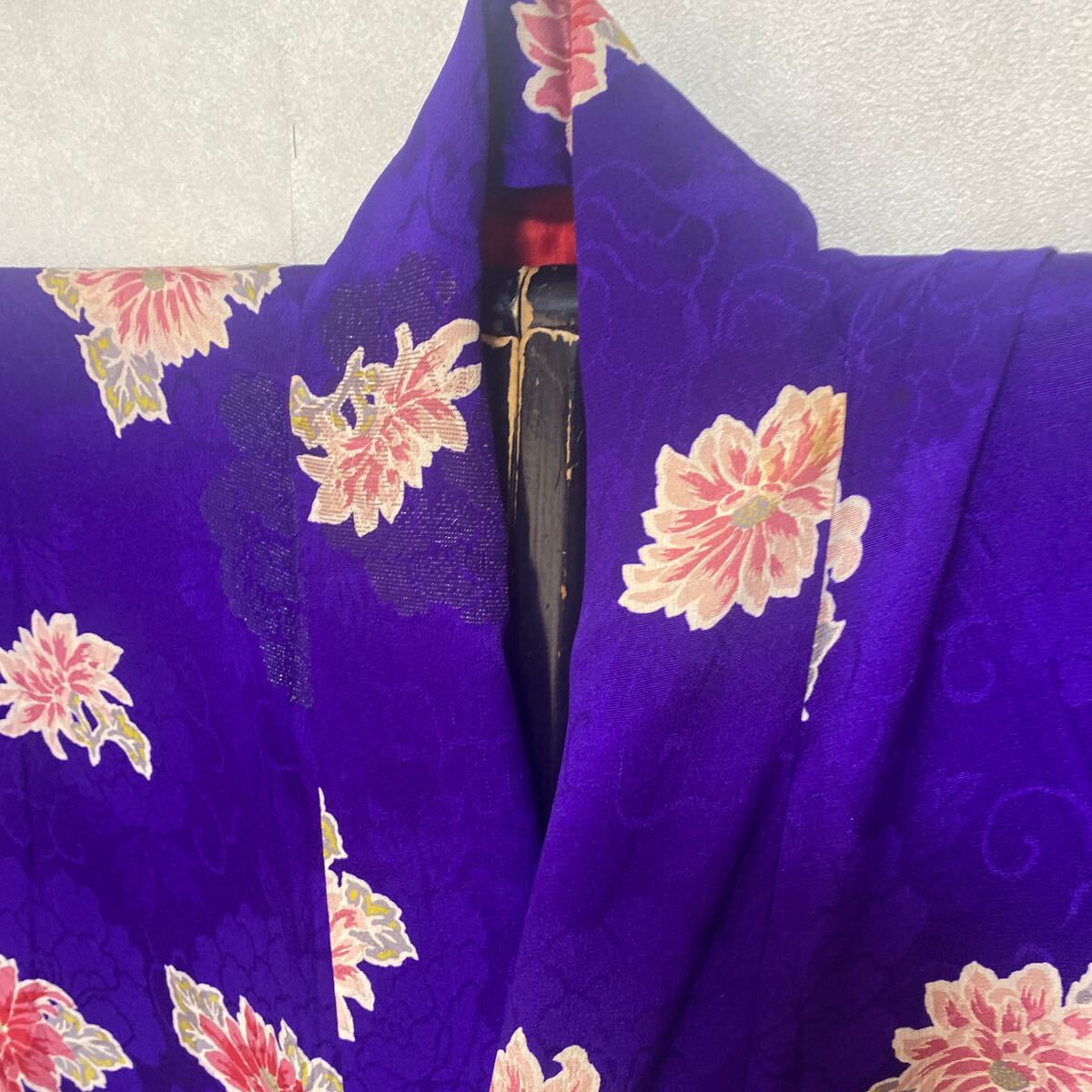 アンティーク 着物 正絹 紫 花 昭和レトロ 大正ロマン モダン 和洋折衷コーデ リメイク 25こ16-15s