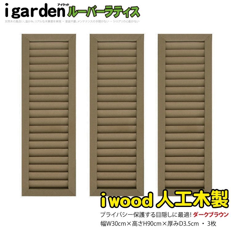 igarden 人工木 ルーバーラティス 3枚セット H900×W300 ダークブラウン 樹脂製 目隠し 日よけ 換気 仕切り 採光 境界 フェンス 10410