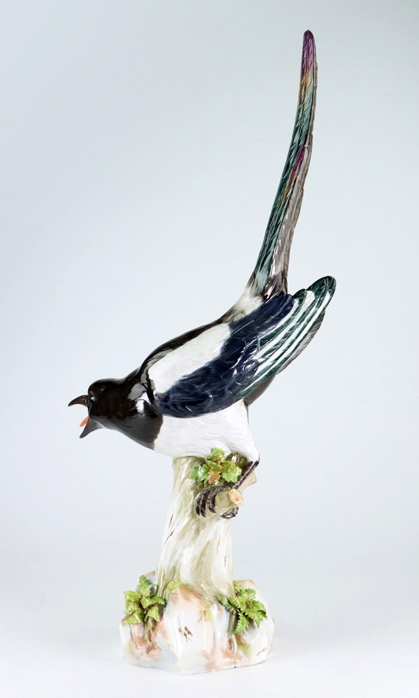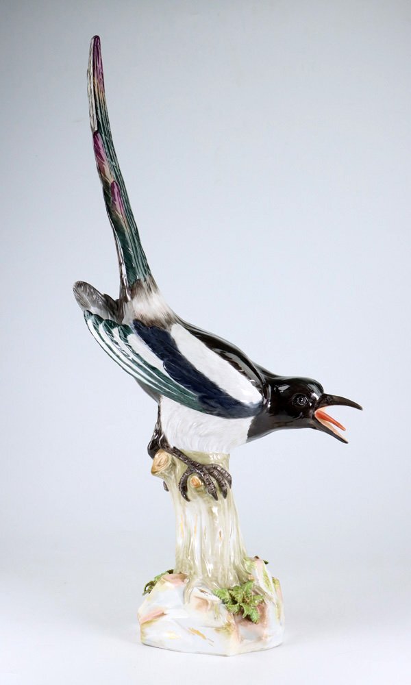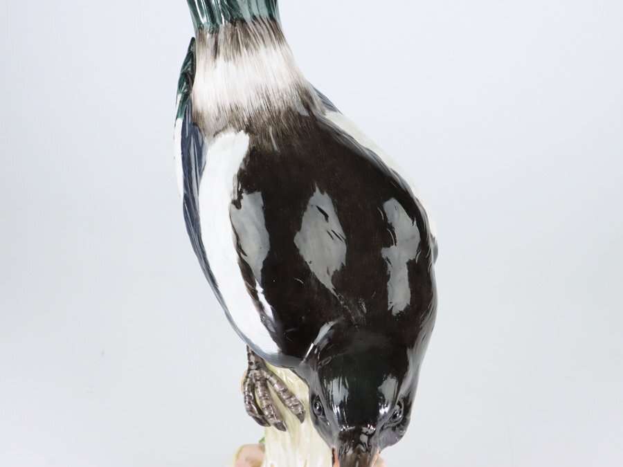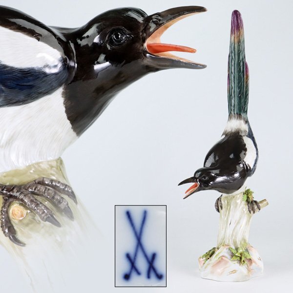 サイズ(約) 高さ 53.5㎝/横幅 18㎝/奥行 26㎝ 重量 2440g 付属品 - 名家コレクション 本物保証 百貨店購入品 本物保証 マイセン 19世紀初頭 フィギュリン ケンドラー原作 カササギ 希少品 特大高さ53.5㎝ 本物保証 この度、マイセン等陶磁器のコレクターの方より所有される作品をお譲りいただきました。 すべて真作保証の間違いのない作品ばかり、その一部の希少な作品を出品いたします。 名実ともに西洋白磁の頂点に君臨する名窯【オールドマイセン】ケンドラー原作の磁器人形、彩色鳥置物です。 およそ19世紀初頭に製作されたマイセンケンドラー磁器人形で、鳥をモチーフとした非常にレアな作品でございます。 マイセンならではの、細部に至る徹底的な造りこみろ鮮やかな色彩に包まれた作品です。 高さ約50cm以上の迫力、なにかを威嚇しているのでしょうか、非常にリアルな造りこみがなされています 底部にマイセン、双剣マーク有。 僅かな禿がありますが、その他景観を損なう傷みなどはなく、写真の通り良好な状態といえます! 大変珍しい希少な作品となっております! 状態、時代の汚れはございますが、画像の通り全体的綺麗な作品でございます。 大事にしていただける方の入札お待ちしております |