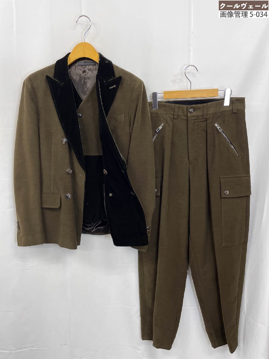 極美品 【ジョルジオアルマーニ】 ベロア生地 ダブル6B 3ピーススーツ (メンズ) 44R カーキブラウン系 3WGGG14C T04LS 伊製 ◇33RMS2808◇