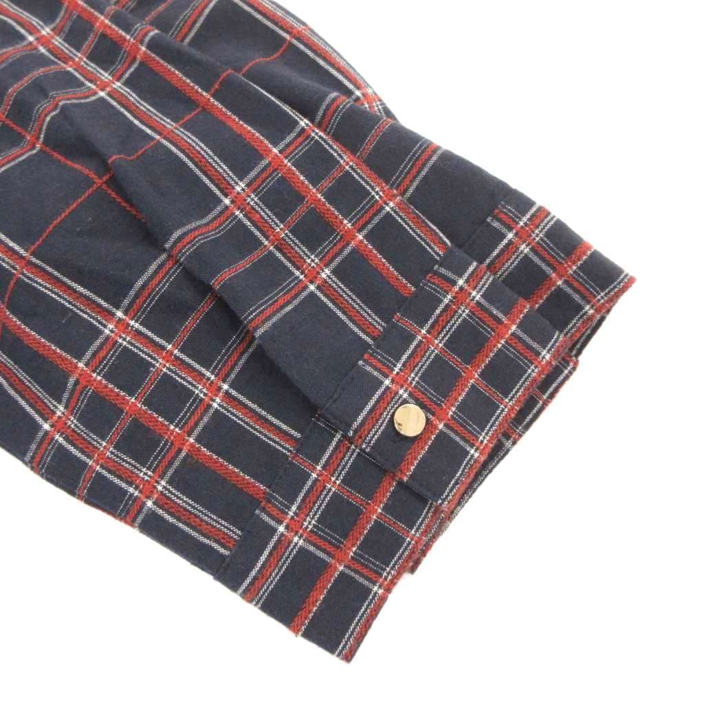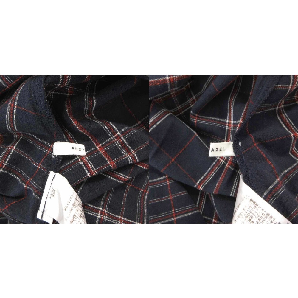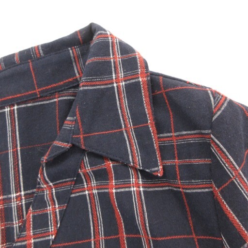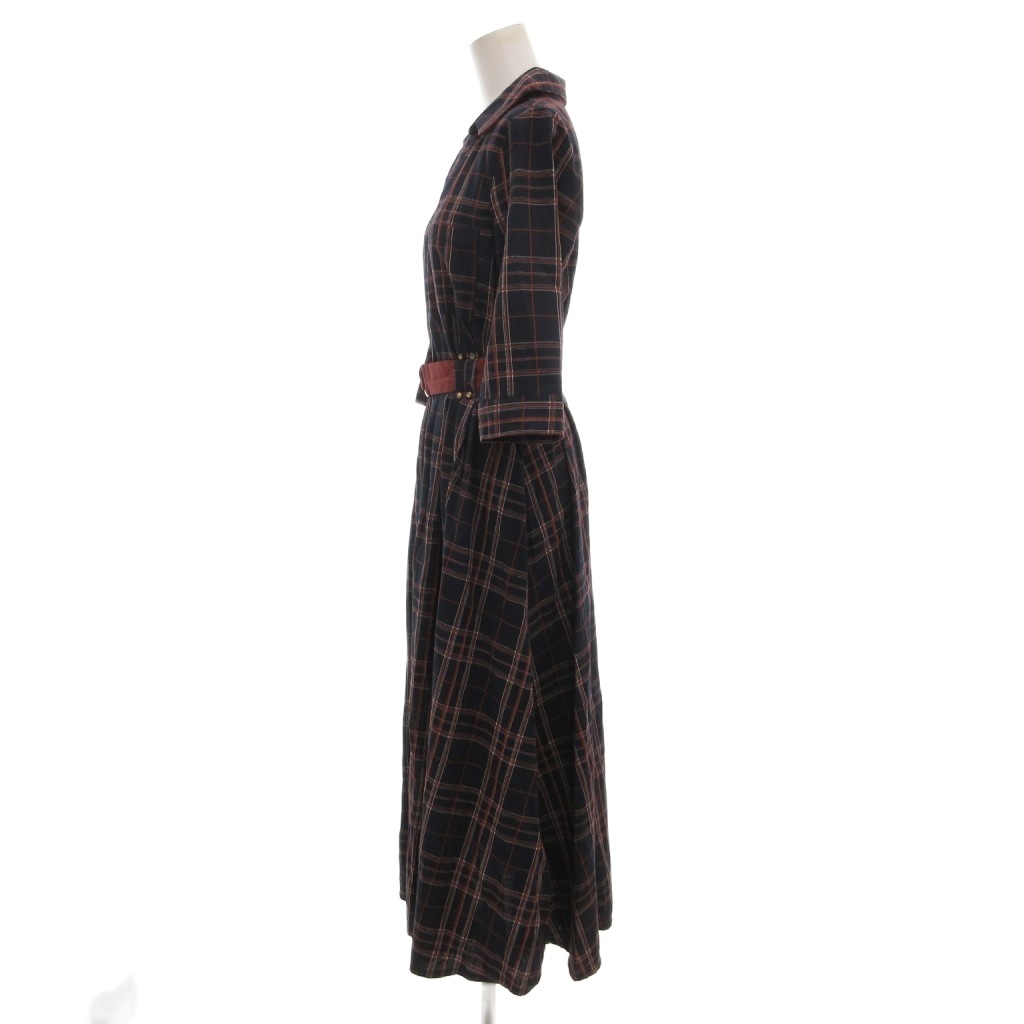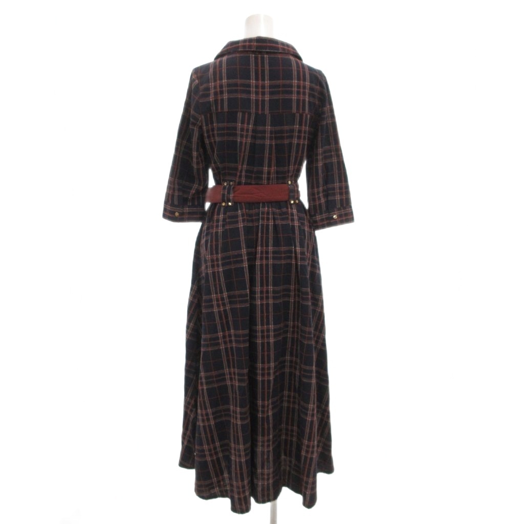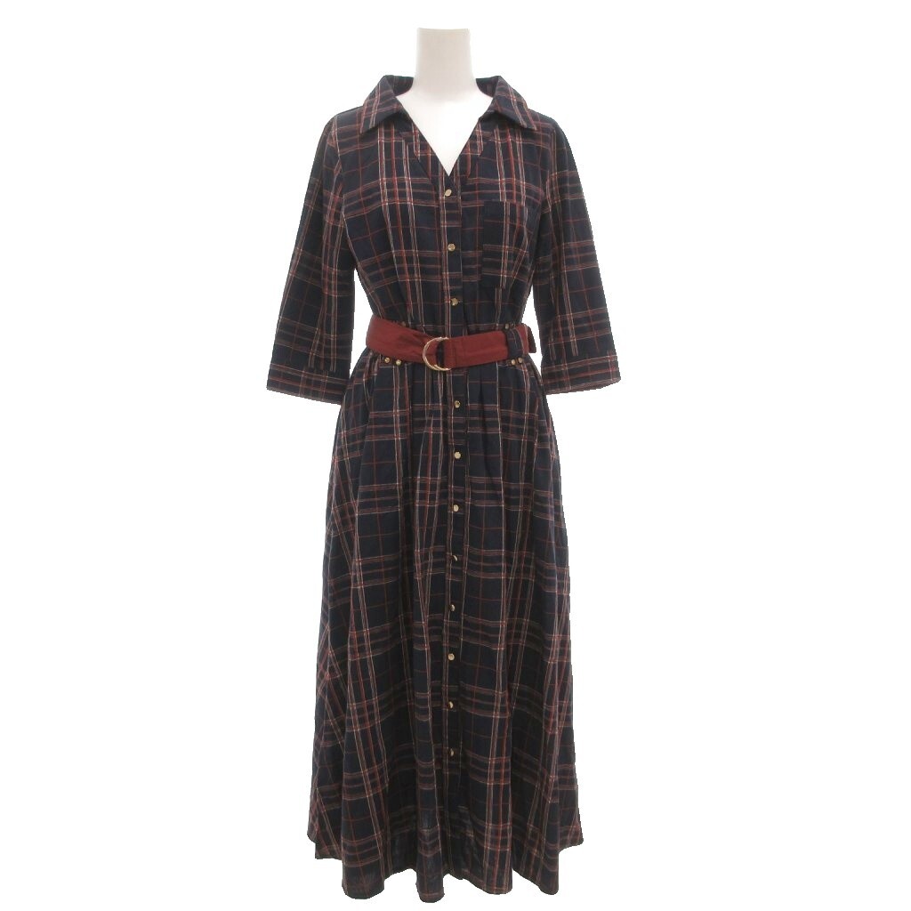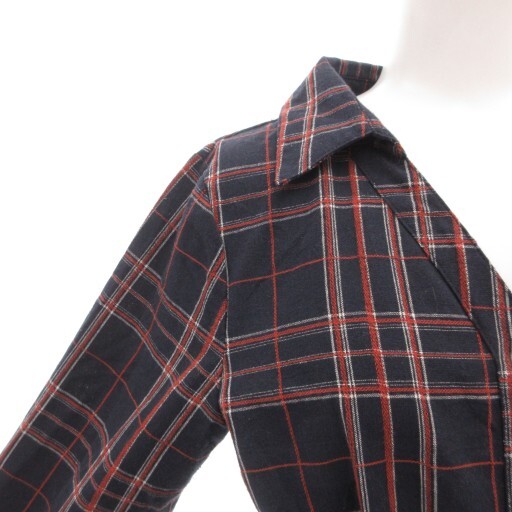 レディアゼル REDYAZEL シャツワンピース S 紺 ネイビー 赤 レッド チェック オープンカラー ロング 7分袖 /GV ■GY43 レディース