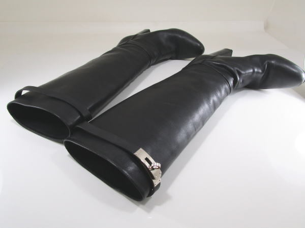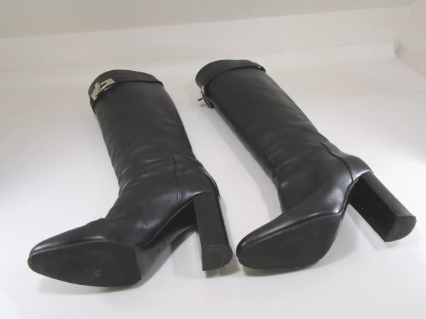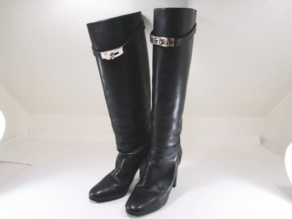 | コメント | ケリーバッグにも使われているバックルがあしらわれたロングブーツです。大人の女性を演出できる高級アイテムです。 使用に伴う傷、汚れがございます。金具に傷がございます。靴の裏に裏張りが貼り付けられています。 またつま先が若干めくれています。 |