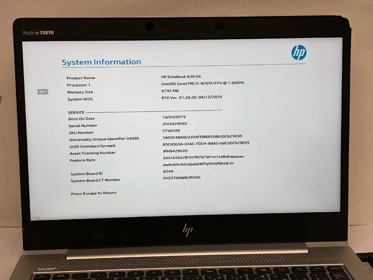 ジャンク/ HP HP EliteBook 830 G6 Intel Core i5-8265U メモリ8.19GB ストレージ無し 【K23364】