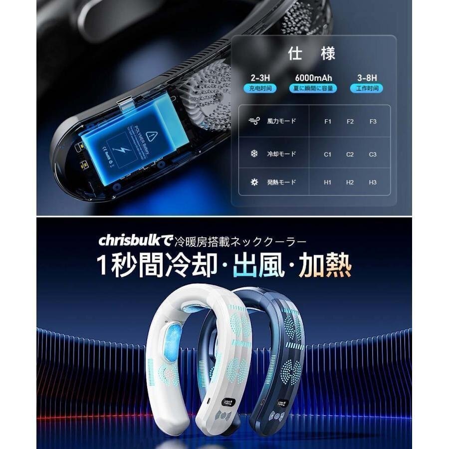 新品 ネッククーラー 首掛け扇風機 3つ冷却プレート 羽なし 半導体冷却 6000mAh大容量 dcモーター 羽なし 冷房/暖房 静音 暑さ対策