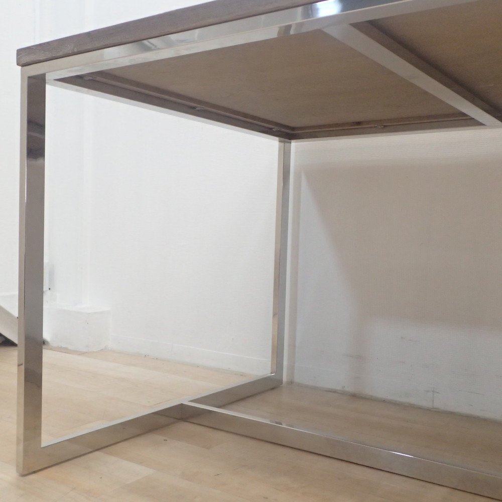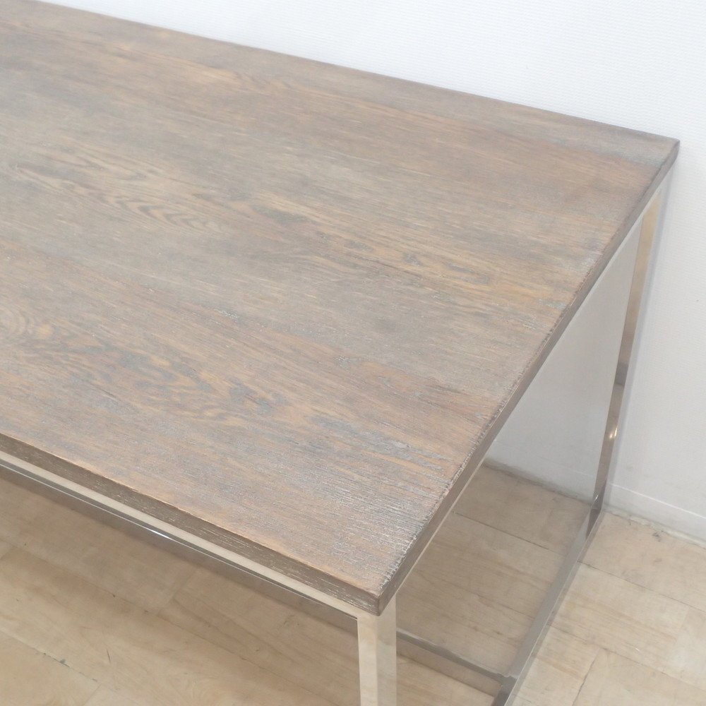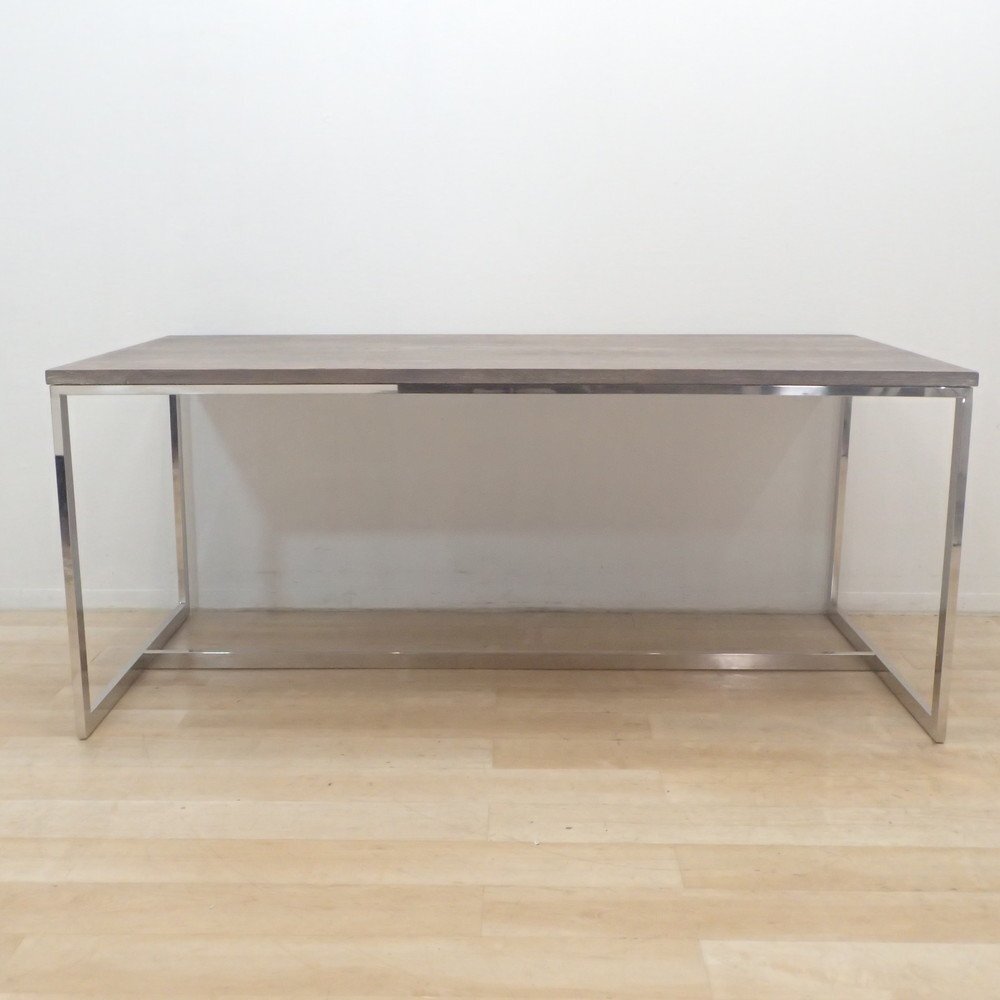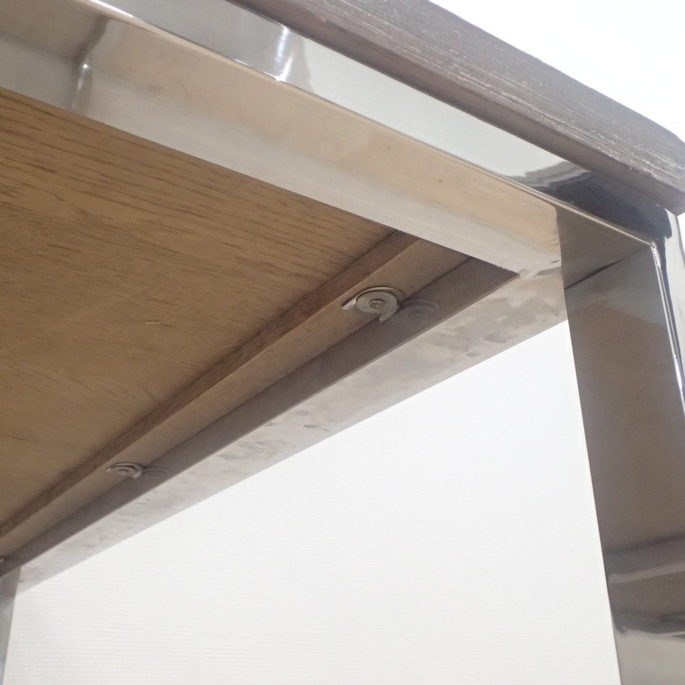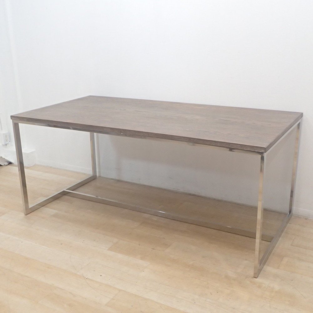 インダストリアルな雰囲気漂うダイニングテーブル。 自然の風合いが美しい木目天板と、輝くスチールフレームの調和がおしゃれです。 サイズは180cm×90cm。作業テーブルやミーティングスペースにもちょうど良い使い勝手の良い大きさです。 ご家庭のリビング使用にはもちろん、ビジネス利用としても会議室やコミュニティフロアをワンランク上質なイメージに仕立てらてます! ぜひ、用途に合わせたインテリアコーディネートを楽しみましょう。 |