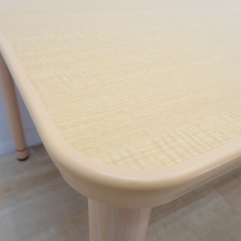 アール・エフ・ヤマカワの介護用テーブルが入荷いたしました。 介護の現場に合わせて開発されたテーブル。 天板の角は丸く、ソフトエッジを使用し安全にも配慮されています。 天板の高さはスペーサーの着脱で2段階に調節が可能。 使用時は高さが740mmとなり、車椅子使用の方にもお使いいただけます。 外したスペーサーは天板裏に取り付けることができ、紛失を防ぎます。 温かみを感じられるナチュラルカラーのテーブルです。ぜひご活用ください。 |