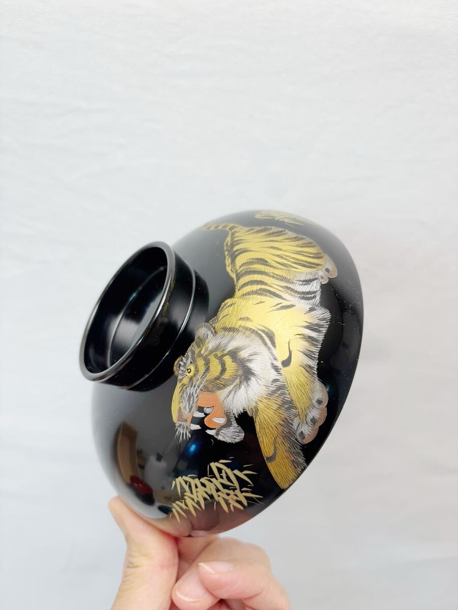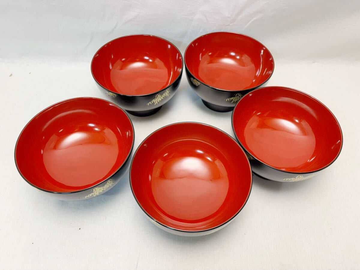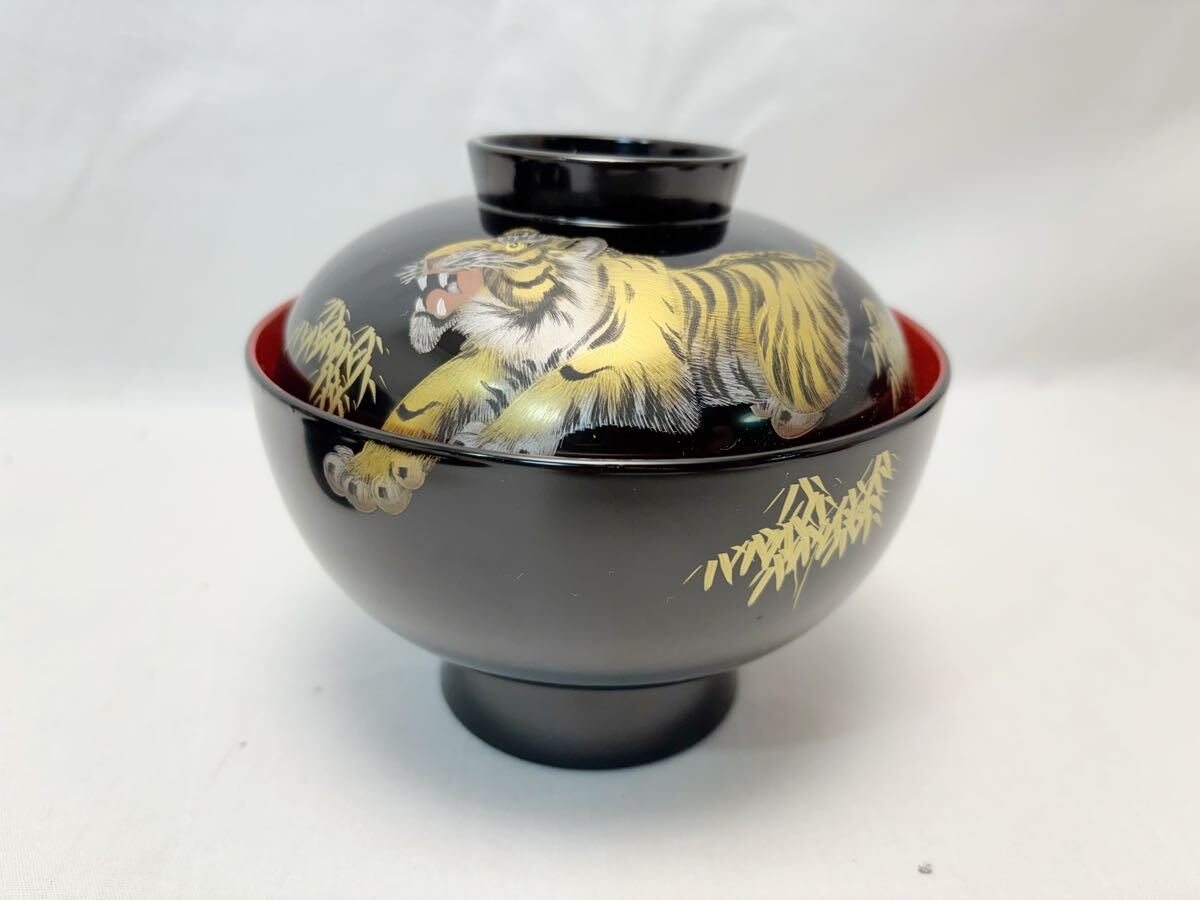 懐石道具 冨田立山作 天然木製 黒真塗 寅彫漆 雑煮椀 5客揃え でございます。
