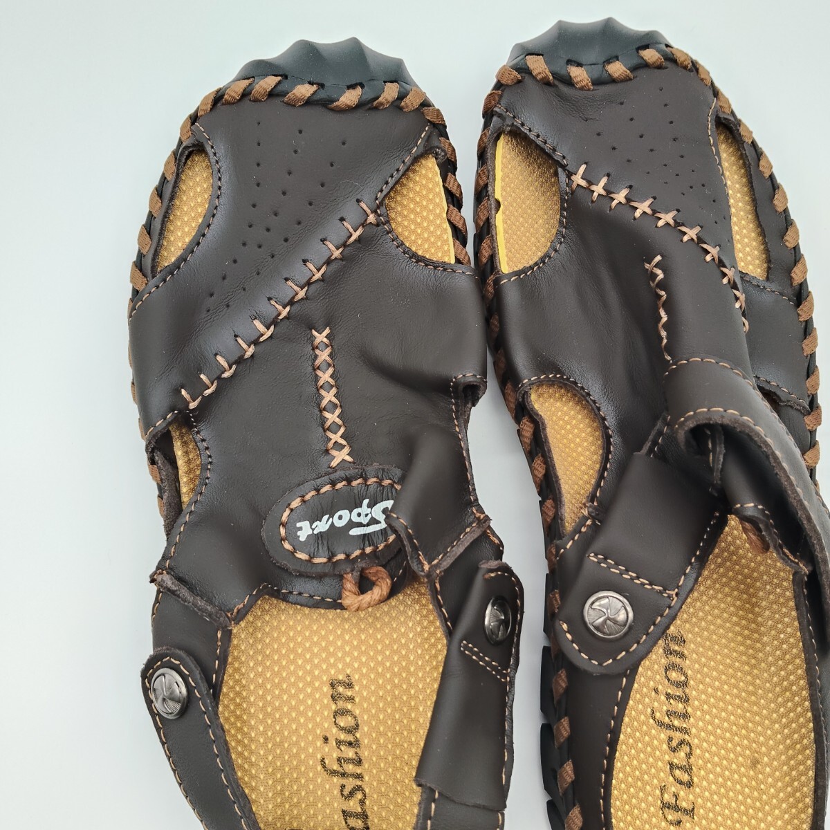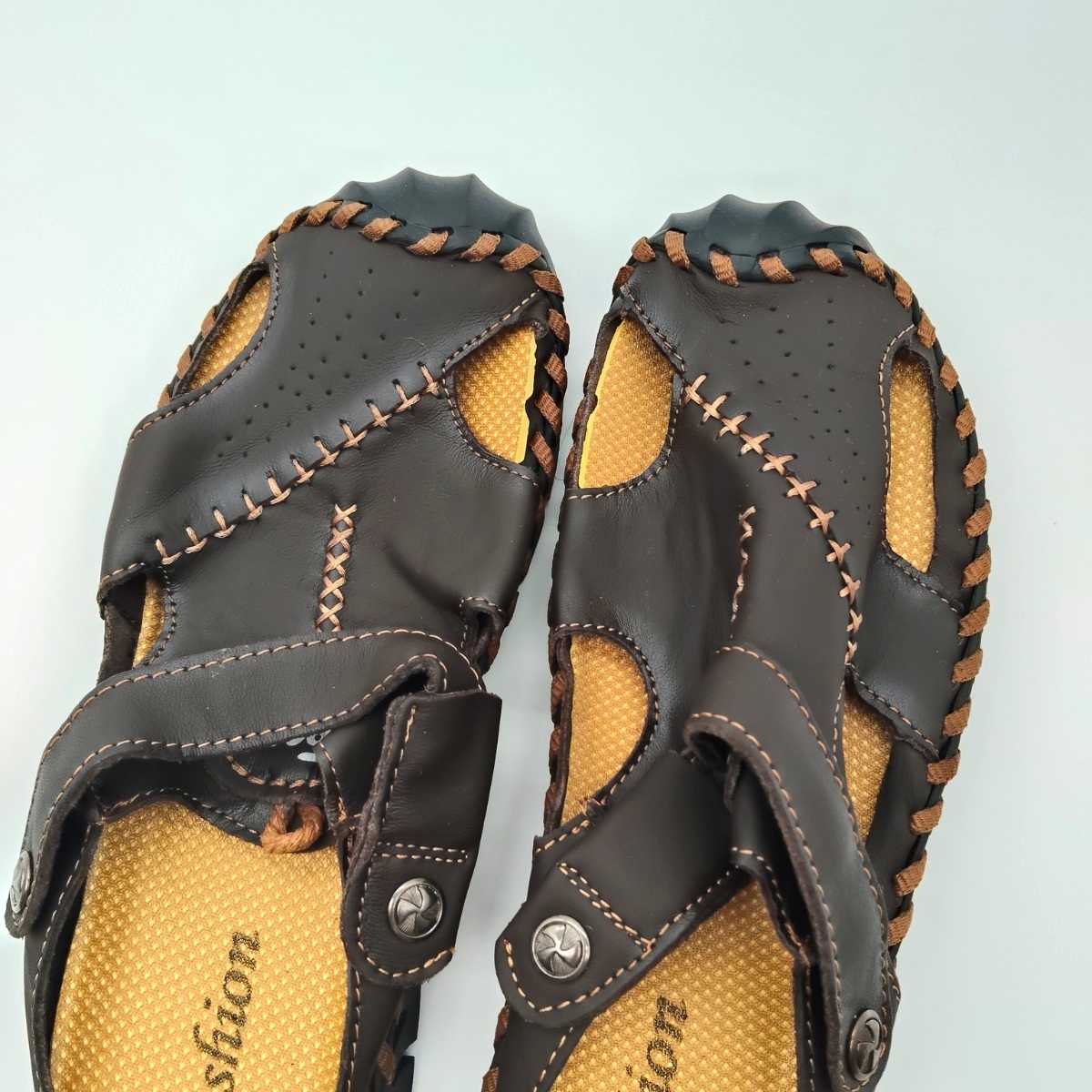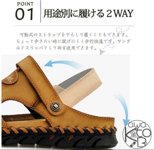 通気性に優れたレザーサンダル、カジュアルな夏のスタイルに最適。
